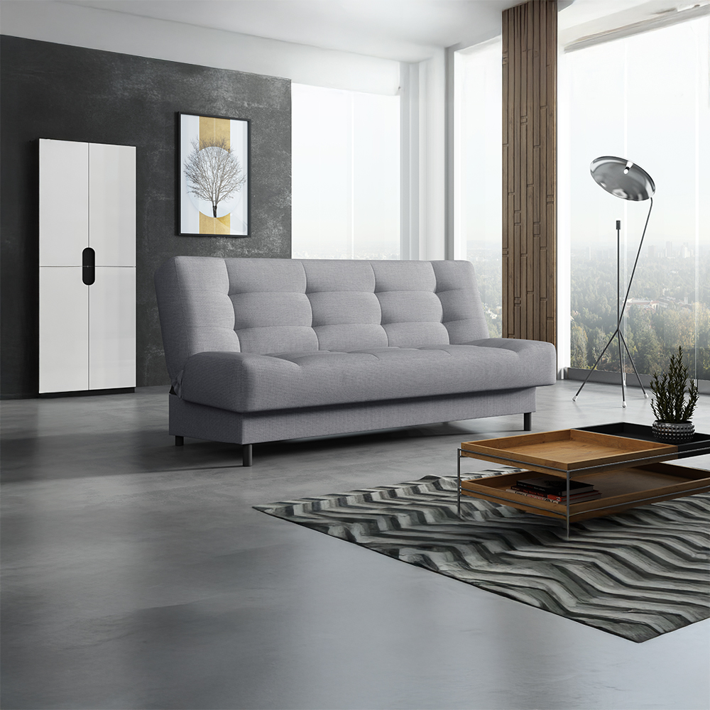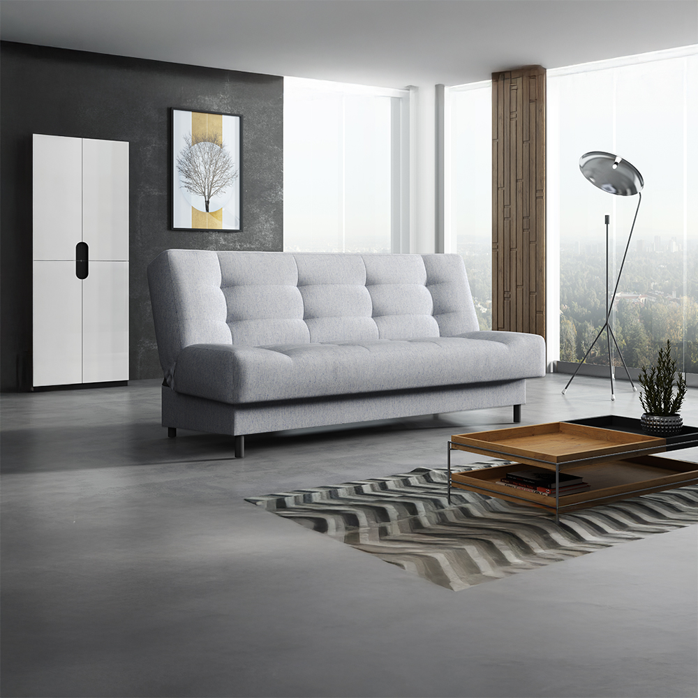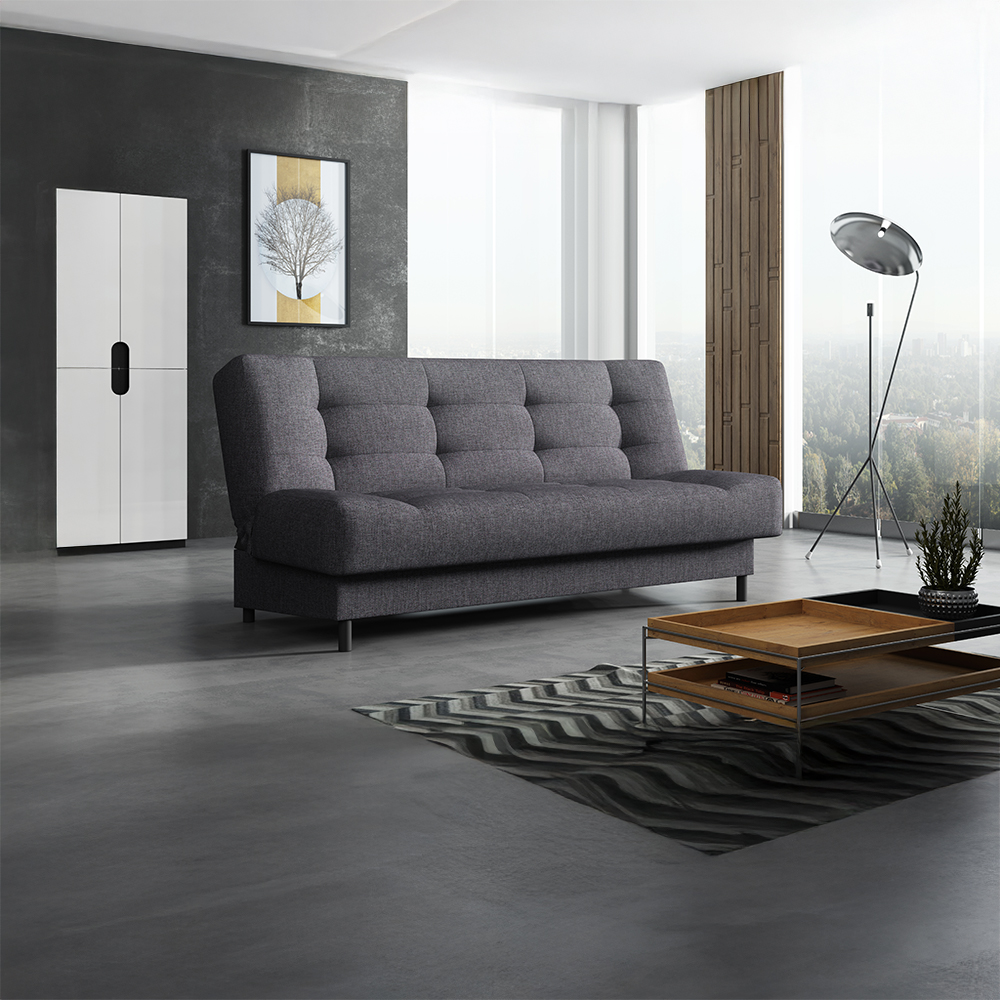 Systém klik-klak umožňuje rychlou přeměnu na lůžko během několika sekund. Pod sedákem se navíc nachází praktický úložný prostor, ideální pro lůžkoviny, deky či polštářky.