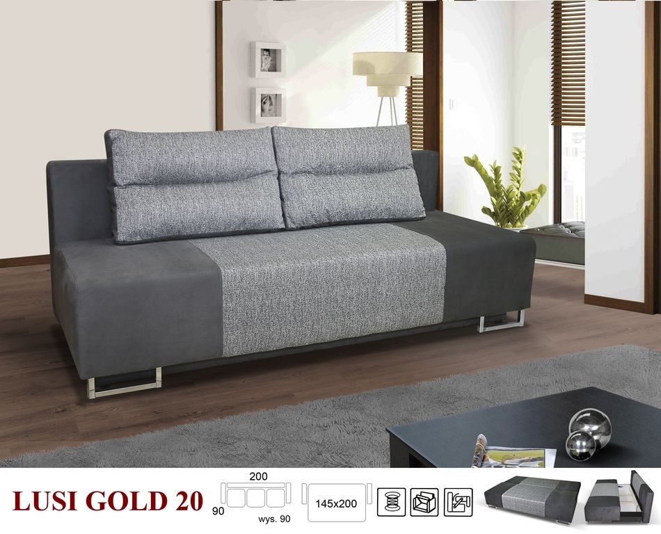 Pohovka Lusi Gold vyniká svým moderním nadčasovým designem. Opěrné polštáře jsou volně ložené, takže si na pohovce můžete udělat pohodlí i bez nutnosti rozkládání na lůžko. Pohovka se díky automatickému mechanismu rozkládá velmi snadno a po sklopení zadní opěrné části, tak vytvoříte přílěžitostné spaní např. pro vaše hosty. Pružiny použité na pérování sedáku pohovky jsou pružiny typu bonell. Součástí pohovky Lusi Gold je samozřejmě i úložný prostor.