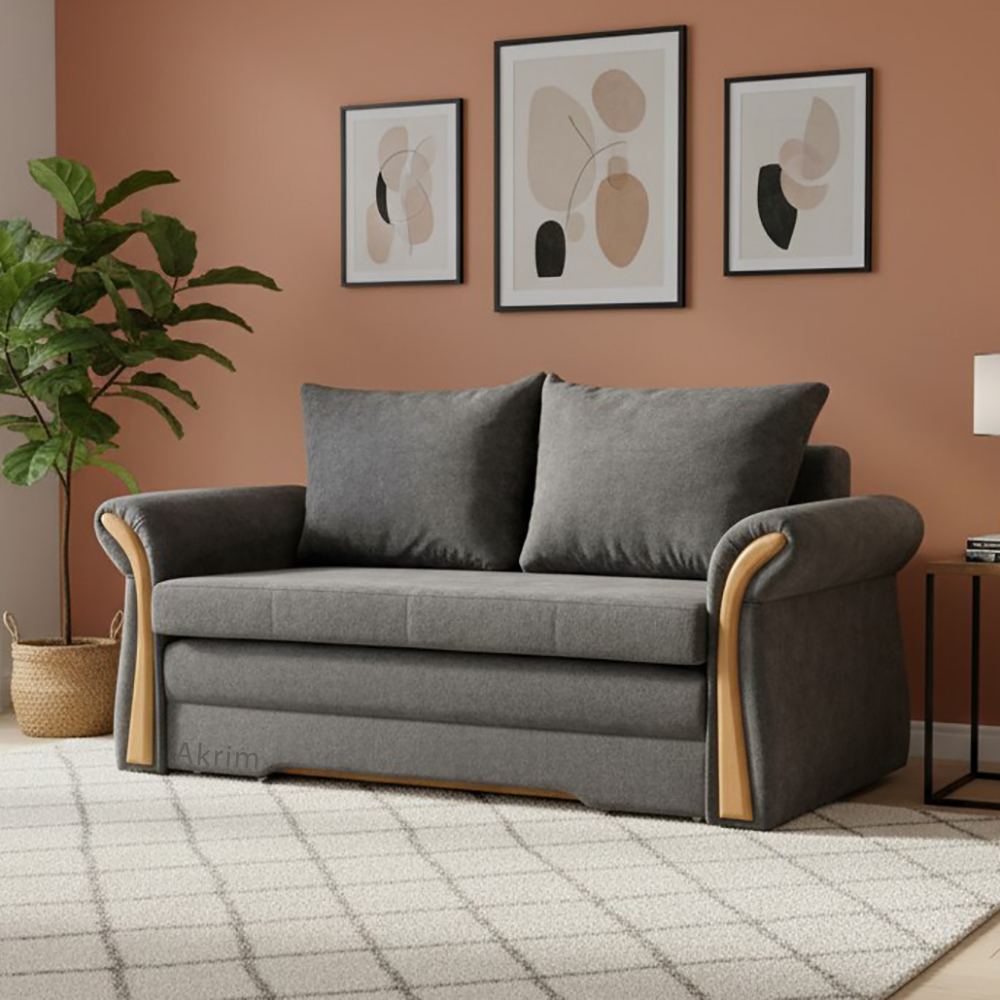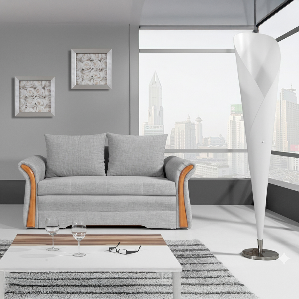 Nata představuje malou elegantní pohovku zdobenou dřevěnými prvky. Je vhodná do obýváku, dětského pokoje, pokoje pro hosty a třeba i na chatu.