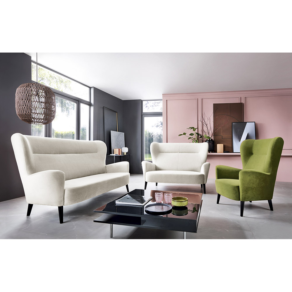 Pohovka NEXT 3 - Kolekce čalouněného nábytku Next si zamiluje každý, komu se líbí skandinávský design. Kvalita, jednoduchost a vysoké dubové nožičky... to vše představuje Next. Pohovku Next nabízíme jako i dvojsed i trojsed. Obývací pokoj skvěle doplní i ušák Next s podnožkou. V křeslech typu ušák odpočívali naši prarodiče a nyní se opět vracejí do moderních domácností. Není nad to se večer uvelebit v křesle, natáhnout si nohy na podnožku a pod lampou si číst knihu nebo sledovat televizi. Záda pohovky jsou vysoké a tak si pohodlně opřete hlavu. Sedák tvoří kvalitní PUR pěna a faliste pružiny (vlnité), které zajistí tu pravou pohodičku. Vysoké dřevěné nožičky oceníte zvláště při úklidu. Next je vhodný i do prostoru, protože je celočalouněný. Tkaninu a stejně tak i odstín nožiček si můžete zvolit libovolně ze vzorníku.