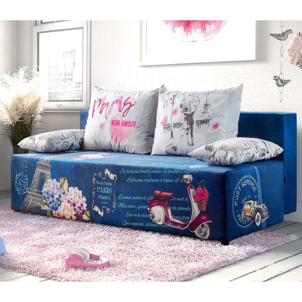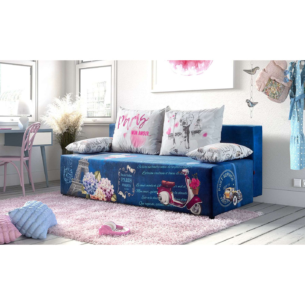 Pohovka PLAY FULL FRANCE rozzáří každý holčičí pokojíček. Tato pohovka s dívčími motivy, inspirovanými romantickou Francií, má kromě své estetické stránky i praktickou. Pohovka se snadno rozkládá a disponuje i úložným prostorem. Pohovka zajistí pohodlné přespání každého kamaráda Vaší holčičky. Sedák je vyplněn kvalitní PUR pěnou v kombinaci s bonelovými pružinami. Tato kombinace zajišťuje kvalitní odpočinek v leže i v sedě. Pokud byste si přáli pohovku vynést a umístit až na své určené místo, sdělte nám tuto informaci do poznámky k objednávce.