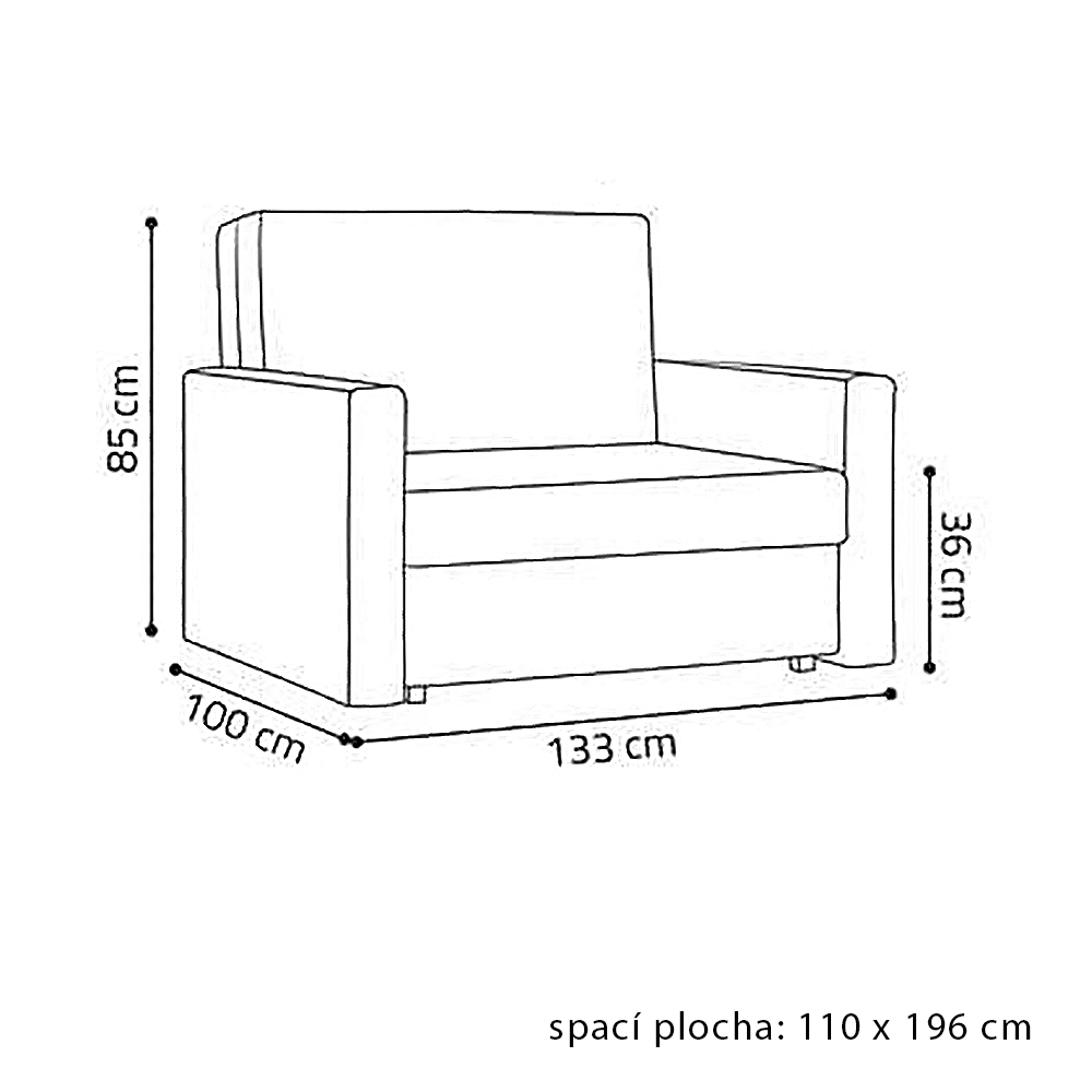 - Rozkládací funkce – lůžko o rozměrech 110 × 196 cm pro příležitostné spaní