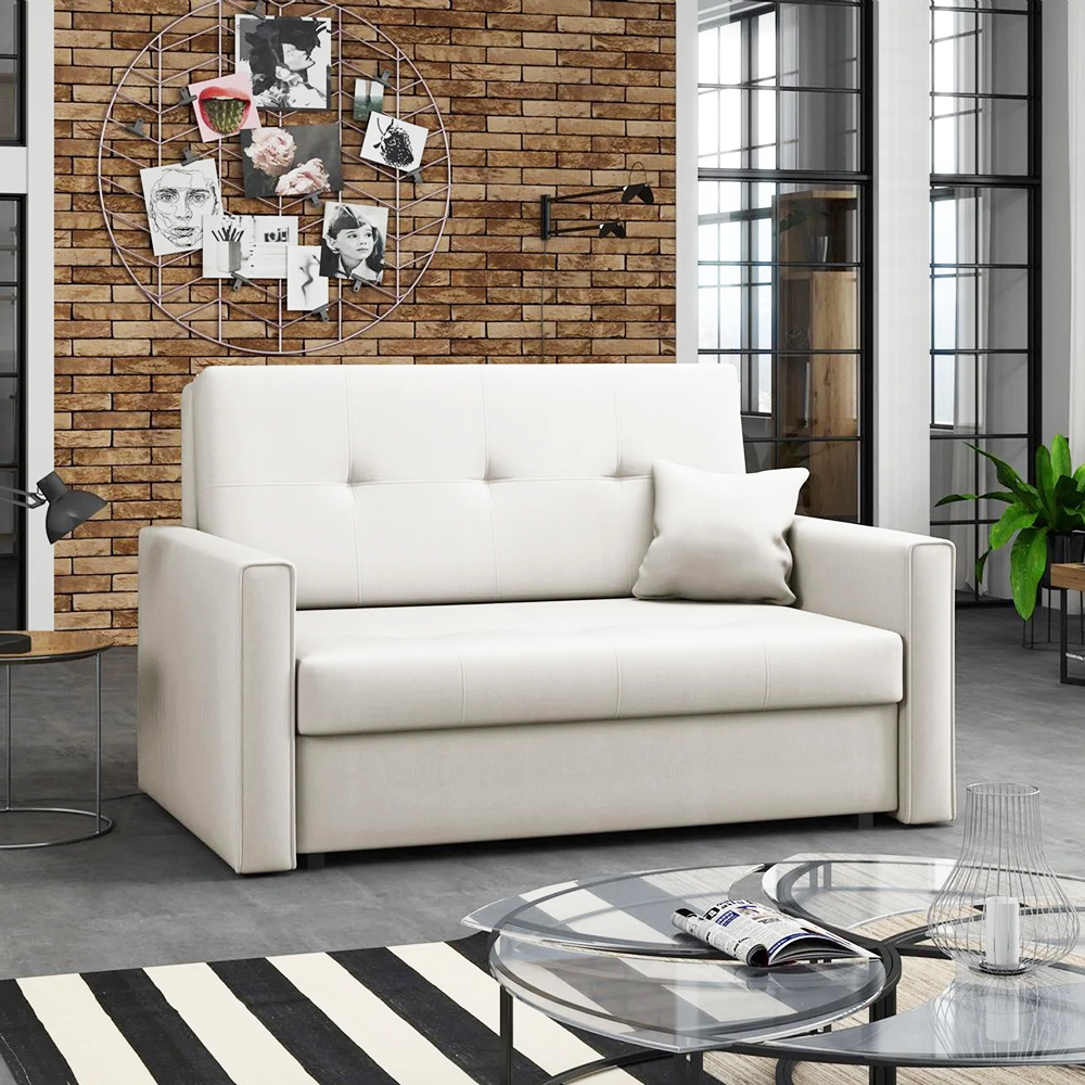 Díky jednoduchému rozkládacímu mechanismu pohovku během chvilky proměníte na lůžko o rozměrech 110 × 196 cm, které je ideální pro příležitostné přespání hostů nebo odpočinek během dne.
