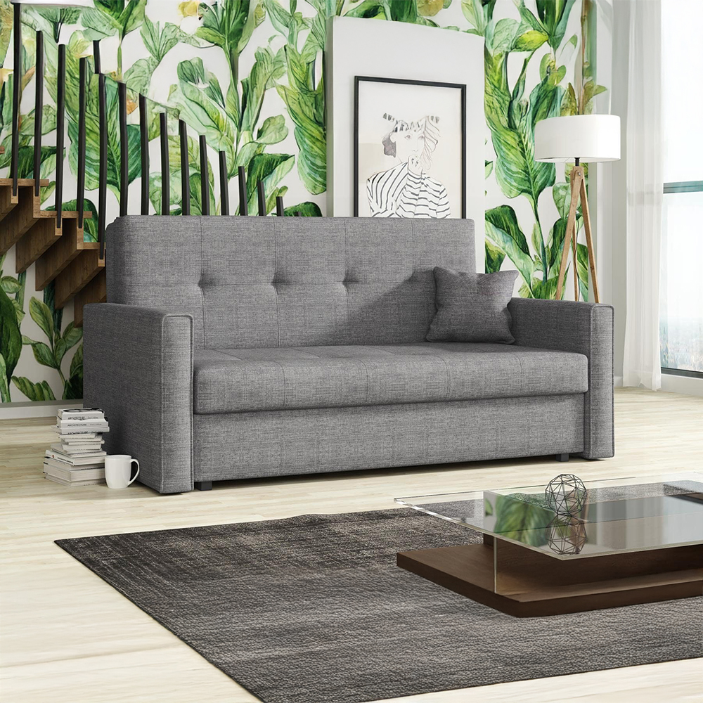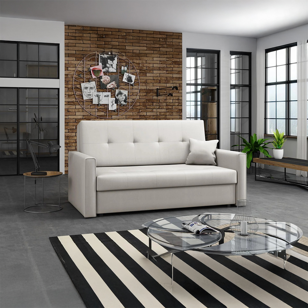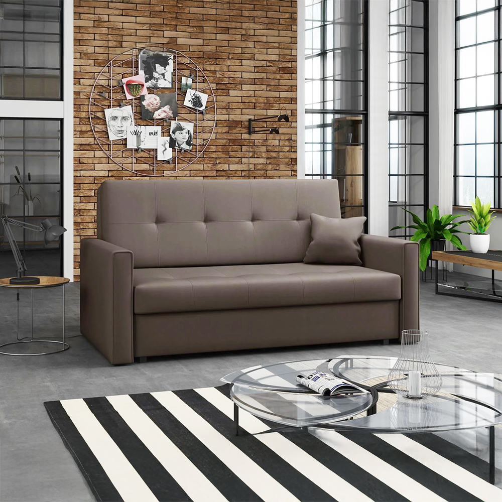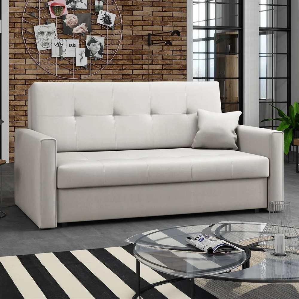 Díky jednoduchému rozkládacímu mechanismu pohovku během chvilky proměníte na lůžko o rozměrech 130 × 196 cm, které je ideální pro příležitostné přespání hostů nebo odpočinek během dne.