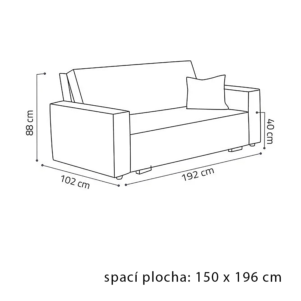 - Rozkládací funkce – spací plocha 150 × 196 cm vhodná pro příležitostné spaní