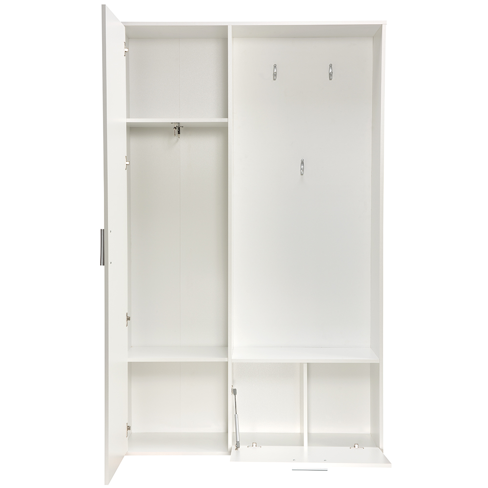 Bis je nadčasová předsíňová stěna se zrcadlem do předsíně nebo chodby. Na pravé straně jsou ramínka na šaty, které nosíme každý den. Níže je přihrádková skříň pro snadnou organizaci. Vlevo je věšák, na který můžeme pověsit například bundy nebo kabáty, a dvě velké police, jedna dole a druhá nahoře. Celek je doplněn zrcadlem po celé výšce nábytku. Dostupné ve více barevných kombinacích. Nábytek je vyroben z kvalitní laminátové dřevotřísky s ochranou ABS hranou. Úchytky jsou ve stříbrném odstínu.
