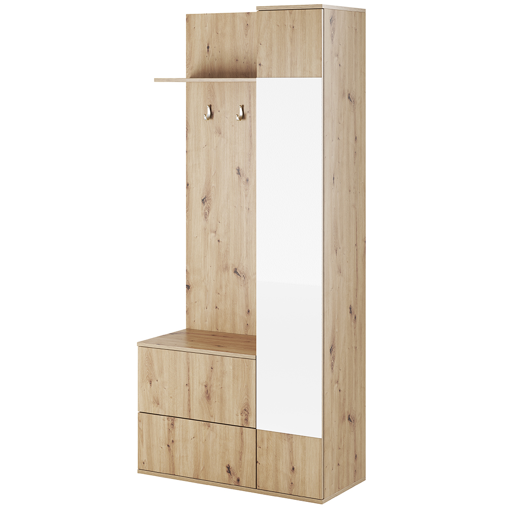 Předsíňová stěna Green představuje moderní styl nábytku. Stěna disponuje úložným prostorem a praktickým zrcadlem. Nábytek je vyroben z kvalitní laminátové dřevotřísky 16 mm s ochranou ABS hranou 0,5 mm. Dvířka se otvírají systémem "PUSH TO OPEN".
