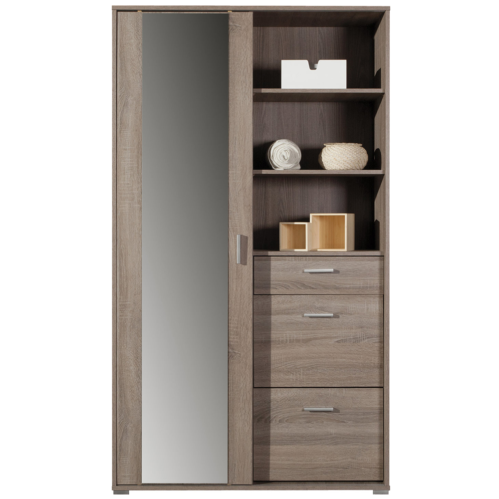 Předsíňová stěna Otis je vhodná do menších předsíněk. Stěna obsahuje botník, police a skříň. Uvnitř skříně je zabudovaná šatní tyč a dvě police. Na dvířkách je praktické zrcadlo. Nábytek je vyroben z kvalitní laminátové dřevotřísky o síle 16 mm s ochranou ABS hranou. Na dvířkách je praktické zrcadlo. Zboží Vám dodáme v demontu s návodem na sestavení a kováním.