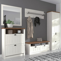 Kolekce PROVENCE se vyznačuje příjemnou barevnou kombinací světlého dekoru borovice andersen a tmavšího odstínu dubu lefkas. Profilované dvířka a černé kovové úchyty dodávají nábytku elegantní a autentický vzhled, který se hodí do každého domova.