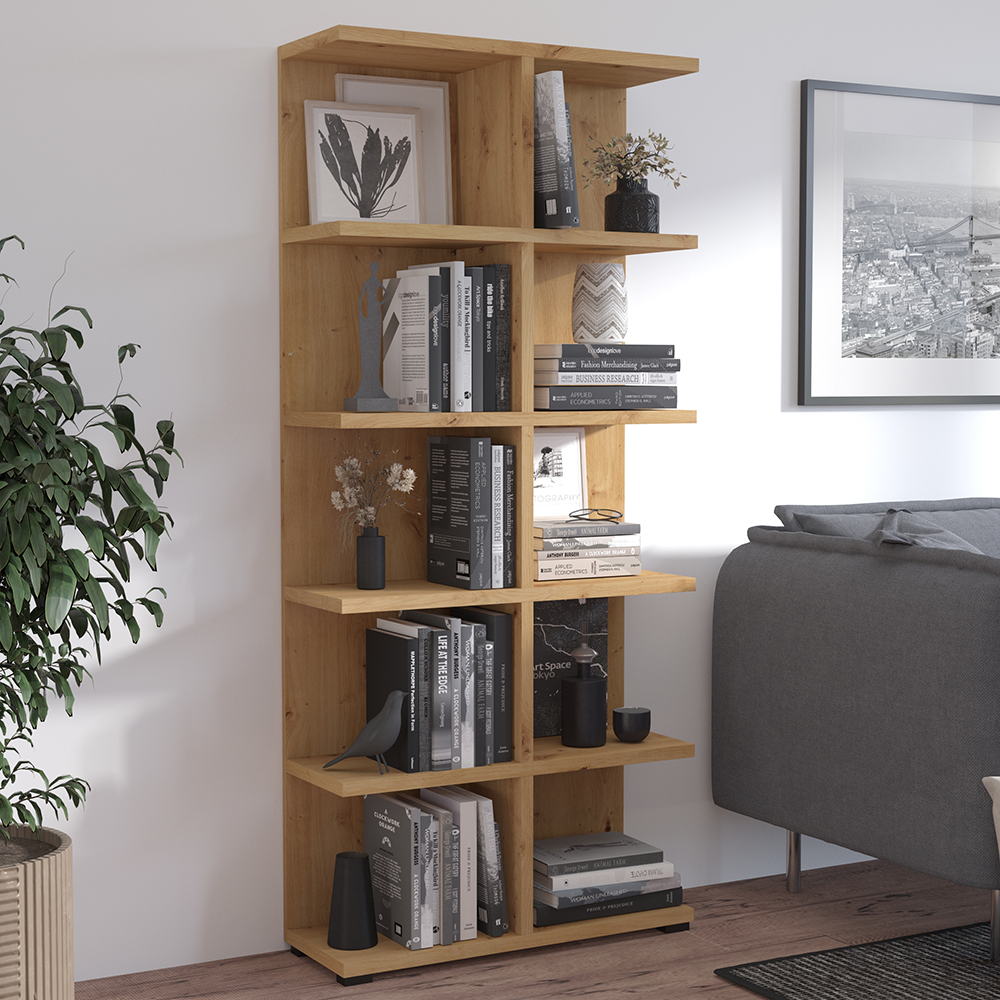 Sestava regálů MORE B kombinuje moderní vzhled, praktické využití a vysokou kvalitu zpracování. Díky svému minimalistickému designu v odstínu dub artisan zapadne do každého interiéru. Skvěle se hodí do obývacího pokoje, ložnice, kanceláře nebo dětského pokoje, kde poskytne přehledné a stylové úložné řešení.