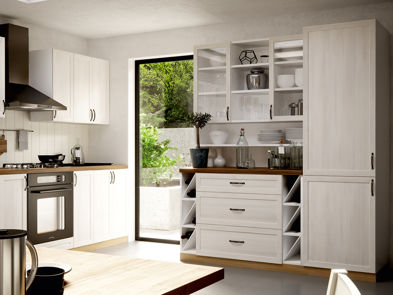 Kuchyňská linka Royal vdechne vaší kuchyni útulnou venkovskou romanitku. Díky jednotlivým dílům si lze sestavit kuchyňskou linku podle svých představ a možností. Korpus skříněk tvoří laminátové dřevotřískové desky o síle 16 mm v bílém matném odstínu. Přední části zásuvek a dvířek jsou vyrobeny z MDF desek v odstínu borovice nordická. Dekor borovice nordické je bílý s jemnou kresbou dřeva. Spodní skříňky disponují nastavitelnými nožkami z pevného plastu. Součástí skříněk je i spodní sokl v odstínu dub dziki. Úchytky jsou kovové v černém matném odstínu. Zboží Vám dodáme v demontu s návodem na sestavení a kováním. Cena nezahrnuje vrchní pracovní desku. Vrchní desku si můžete objednat zvlášť v jakékoli délce podle potřeby.