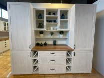Kuchyňská linka Royal vdechne vaší kuchyni útulnou venkovskou romanitku. Díky jednotlivým dílům si lze sestavit kuchyňskou linku podle svých představ a možností. Korpus skříněk tvoří laminátové dřevotřískové desky o síle 16 mm v bílém matném odstínu. Přední části zásuvek a dvířek jsou vyrobeny z MDF desek v odstínu borovice nordická. Dekor borovice nordické je bílý s jemnou kresbou dřeva. Spodní skříňky disponují nastavitelnými nožkami z pevného plastu. Součástí skříněk je i spodní sokl v odstínu dub dziki. Úchytky jsou kovové v černém matném odstínu. Zboží Vám dodáme v demontu s návodem na sestavení a kováním. Cena nezahrnuje vrchní pracovní desku. Vrchní desku si můžete objednat zvlášť v jakékoli délce podle potřeby.