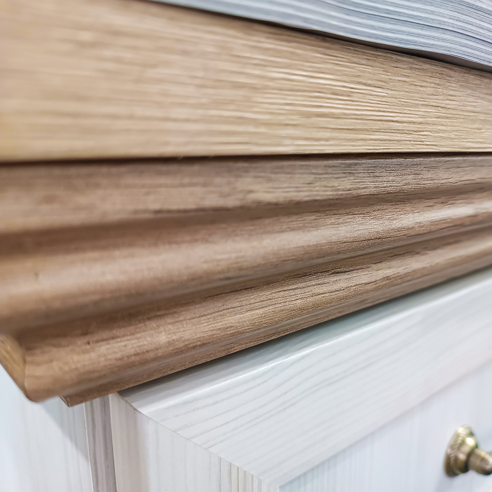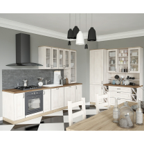 Komoda Royal R2S - Elegantní kolekce nábytku Royal nabízí širokou škálu sestav i jednotlivých kusů, ze kterých si snadno sestavíte ložnici, obývací pokoj, jídelnu i kuchyni na míru. Tuto kolekci romantického francouzského stylu nabízíme v příjemné kombinaci dřevěných dekorů borovice nordické a dubu dziki. Korpus nábytku Royal je vyroben z kvalitní laminátové dřevotřísky o síle 16 mm. Vrchní deska je zesílená na 20 mm a společně s ozdobnou lištou dodává nábytku masivní vzhled. Dvířka a čela zásuvek tvoří MDF desky o síle 16 mm. Zásuvky jsou opatřeny kolečkovými pojezdy. Záda zpevňují desky HDF s omyvatelnou vnitřní stranou. Kovové zdobené úchyty skvěle doplňují design nábytku Royal. Zboží Vám dodáme v demontu s podrobným návodem na sestavení a kováním.