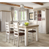 Konferenční stolek Royal LN2 - Elegantní kolekce nábytku Royal nabízí širokou škálu sestav i jednotlivých kusů, ze kterých si snadno sestavíte ložnici, obývací pokoj, jídelnu i kuchyni na míru. Tuto kolekci romantického francouzského stylu nabízíme v příjemné kombinaci dřevěných dekorů borovice nordické a dubu dziki. Korpus nábytku Royal je vyroben z kvalitní laminátové dřevotřísky o síle 16 mm. Vrchní deska je zesílená na 20 mm a společně s ozdobnou lištou dodává nábytku masivní vzhled. Dvířka a čela zásuvek tvoří MDF desky o síle 16 mm. Zásuvky jsou opatřeny kolečkovými pojezdy. Záda zpevňují desky HDF s omyvatelnou vnitřní stranou. Kovové zdobené úchyty skvěle doplňují design nábytku Royal. Zboží Vám dodáme v demontu s podrobným návodem na sestavení a kováním.