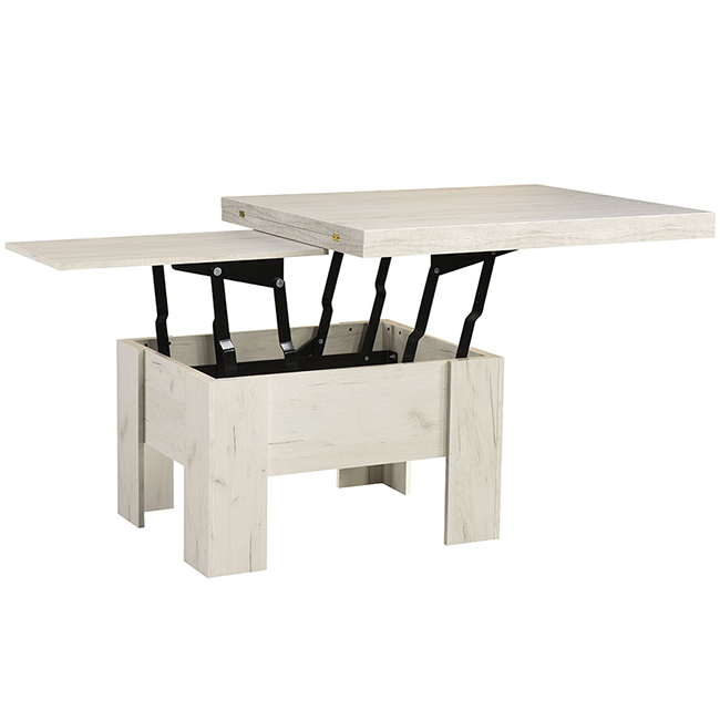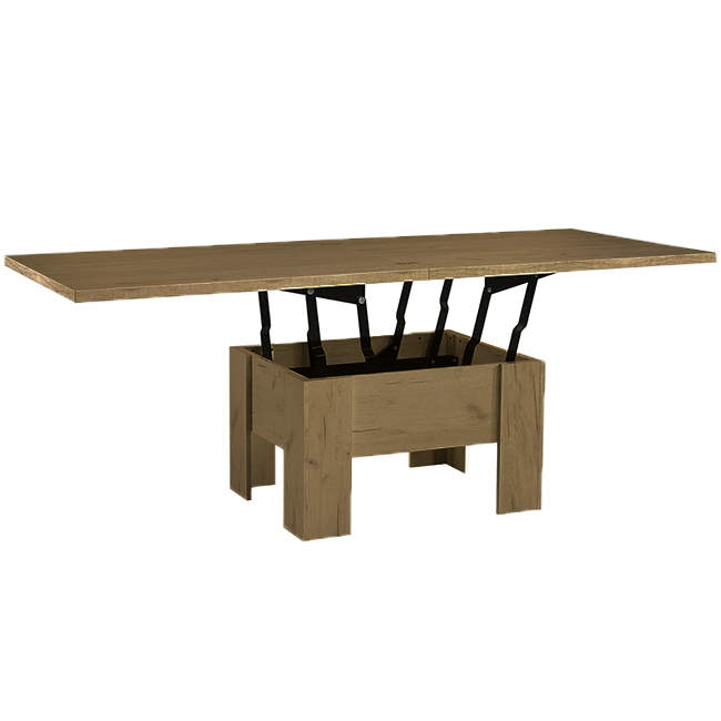 Rozkládací konferenční stolek Eryk do obývacího pokoje Vám uspoří spoustu místa a v případě potřeby nabídne prostor i pro větší návštěvu. Stolek zvednete až do výšky běžného jídelního stolu na 78 cm. Na šířku pak dostanete krásný rozměr až 200 cm. Je to tzv. stolek 2v1. Nábytek je vyroben z kvalitní laminátové dřevotřísky. Zboží Vám dodáme v demontu s podrobným návodem na sestavení a kováním.