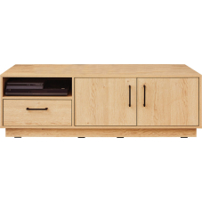 Komoda SN7 - Obývací pokoj Santiago v příjemném dekoru dub propůjčí Vašemu interiéru neobvyklé kouzlo. Nábytek je vyroben z kvalitní laminátové dřevotřísky LTD o síle 16 mm s ochrannou ABS hranou. Záda tvoří HDF desky v dekoru dubu. Kolekci Santiago Vám nabízíme v předdefinovaných sestavách i po jednotlivých dílech. Díky tomu si můžete svůj domov vybavit podle přání. Dvířka a přední čela zásuvek jsou opatřeny elegantními kovovými úchytkami v černé barvě. K vitrínám doporučujeme objednat LED osvětlení, které navodí příjemnou atmosféru během tmavých večerů. Nábytek Vám dodáme v demontu s podrobným návodem na sestavení a kováním. Montáž není náročná.