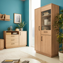Komoda SN7 - Obývací pokoj Santiago v příjemném dekoru dub propůjčí Vašemu interiéru neobvyklé kouzlo. Nábytek je vyroben z kvalitní laminátové dřevotřísky LTD o síle 16 mm s ochrannou ABS hranou. Záda tvoří HDF desky v dekoru dubu. Kolekci Santiago Vám nabízíme v předdefinovaných sestavách i po jednotlivých dílech. Díky tomu si můžete svůj domov vybavit podle přání. Dvířka a přední čela zásuvek jsou opatřeny elegantními kovovými úchytkami v černé barvě. K vitrínám doporučujeme objednat LED osvětlení, které navodí příjemnou atmosféru během tmavých večerů. Nábytek Vám dodáme v demontu s podrobným návodem na sestavení a kováním. Montáž není náročná.