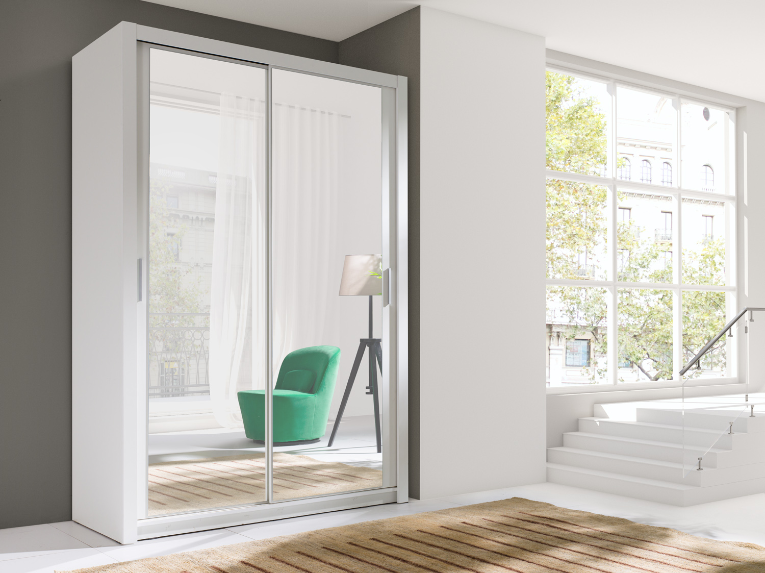 Šatní skříň 150 cm - bílá/zrcadlo
