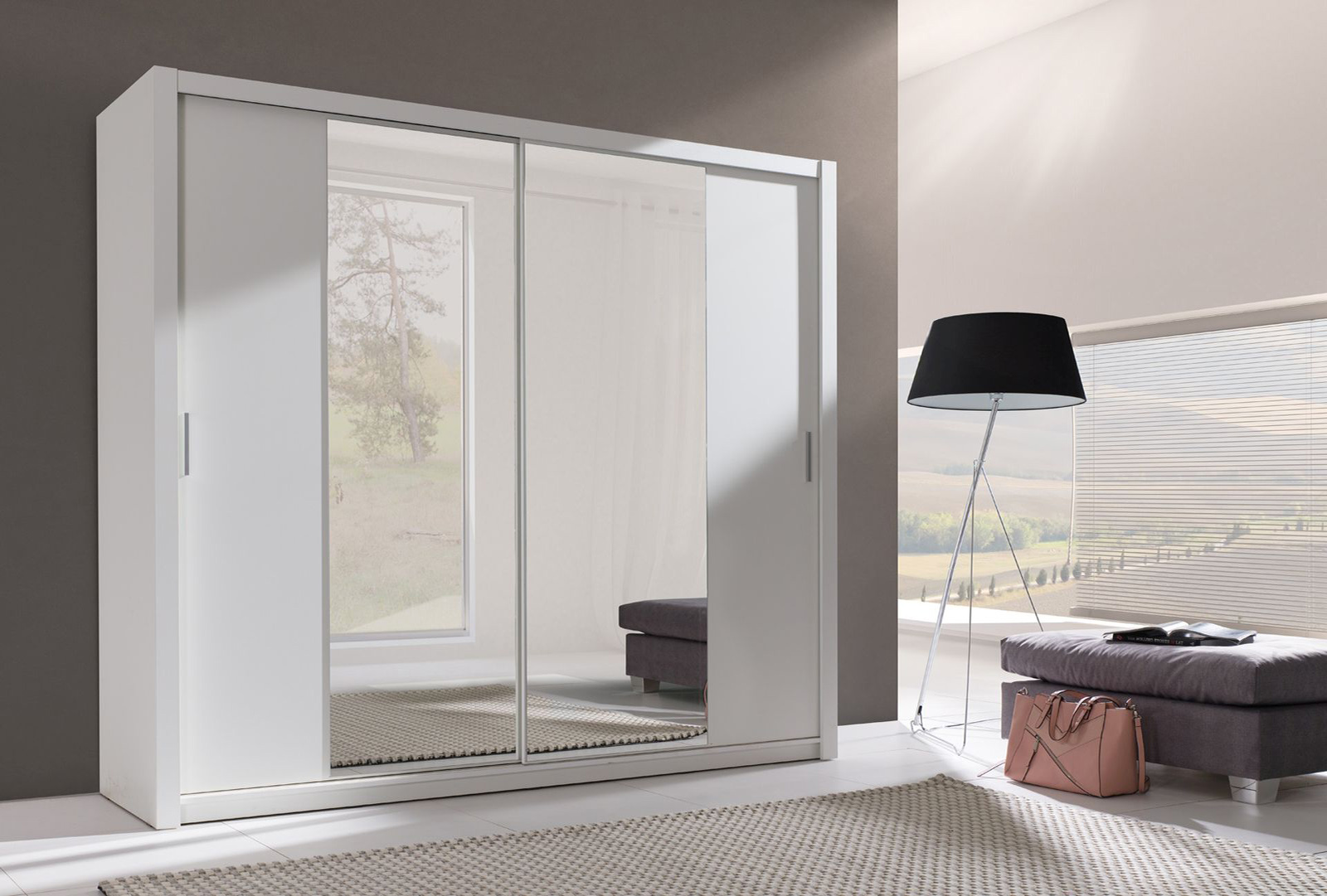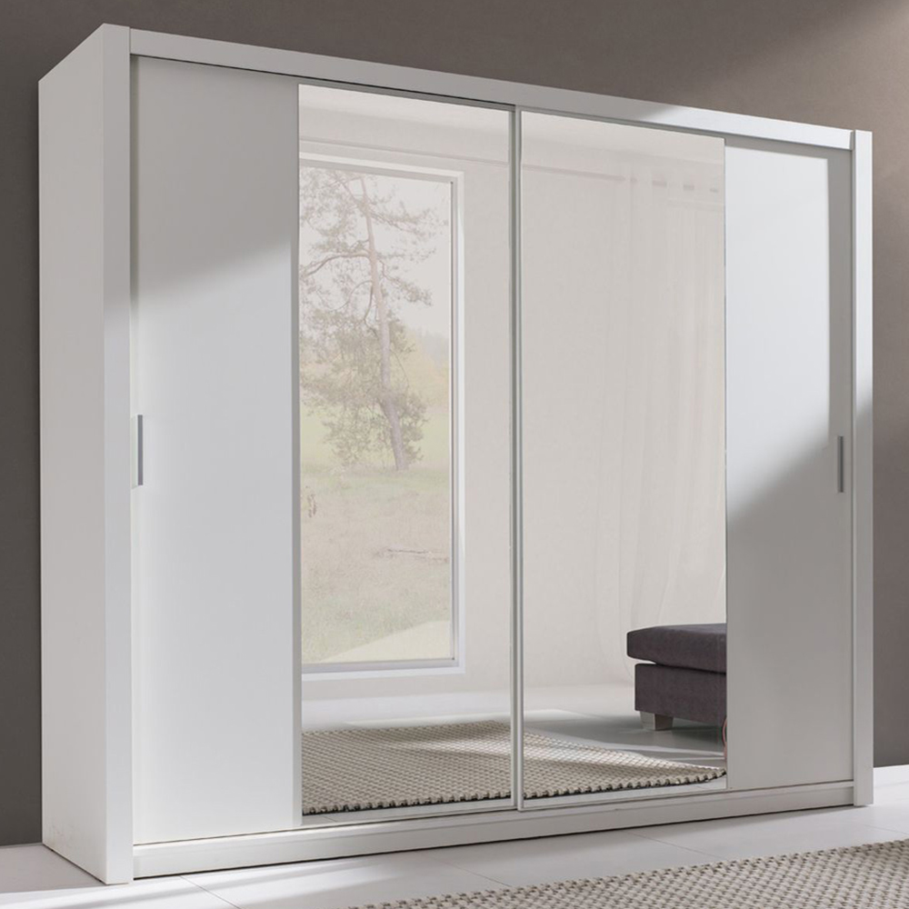 Šatní skříň 220 cm - bílá/zrcadlo