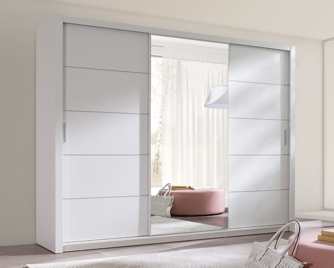 Šatní skříň 250 cm nabízíme v několika barevných provedení v kombinaci se zrcadlem. Vnitřek skříně je opatřen policemi a šatními tyčemi. Posuvné dveře, kterými skříň disponuje, jsou posuvné a šetří tak prostor v pokoji. Nábytek je vyroben z kvalitní laminátové dřevotřísky. Zboží Vám dodáme v demontu s návodem na sestavení a kováním.