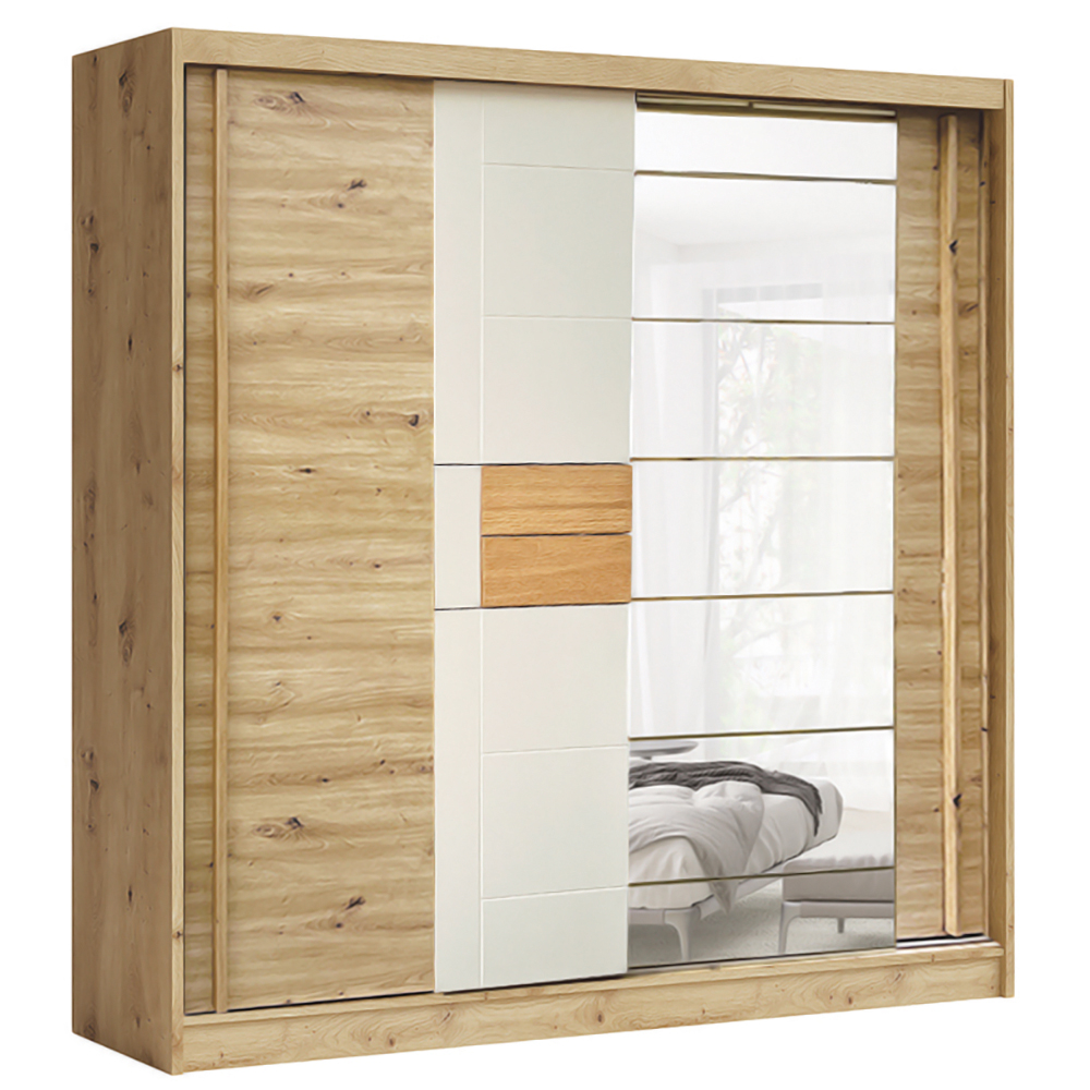 Šatní skříň AVANTGARDE AV-2 se zrcadlem | 200 cm | artisan/kašmír