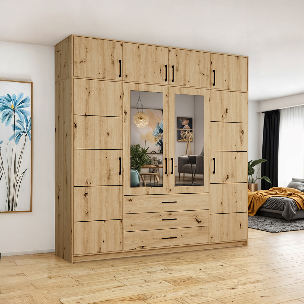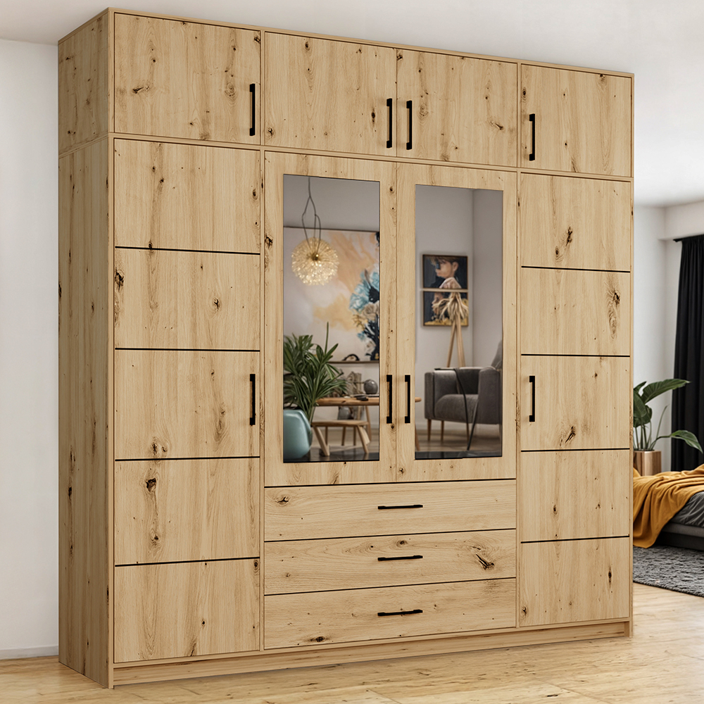 Šatní skříň ELENA 4D 6S + zrcadlo + 6x zásuvka 176,3 cm | dub sonoma