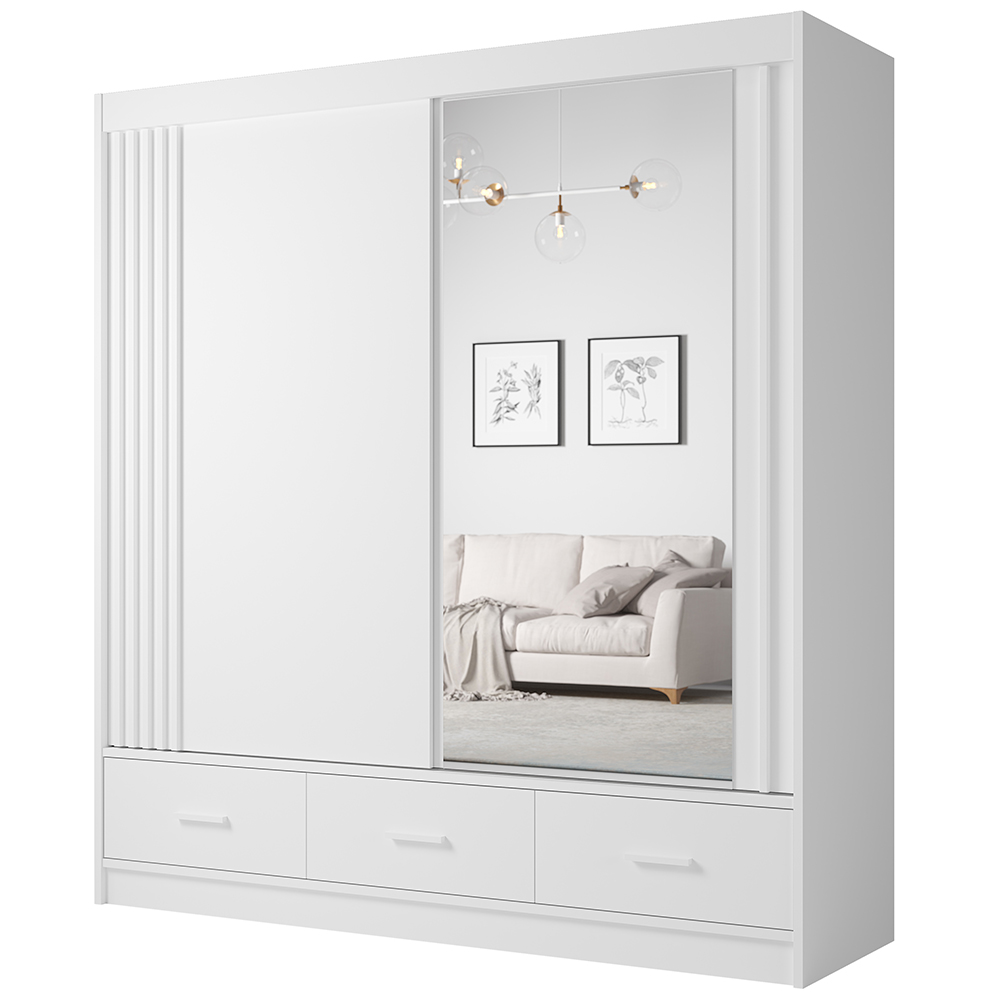 Šatní skříň CANADA CA-21 200 cm | se zrcadlem | bílá s bílými úchyty