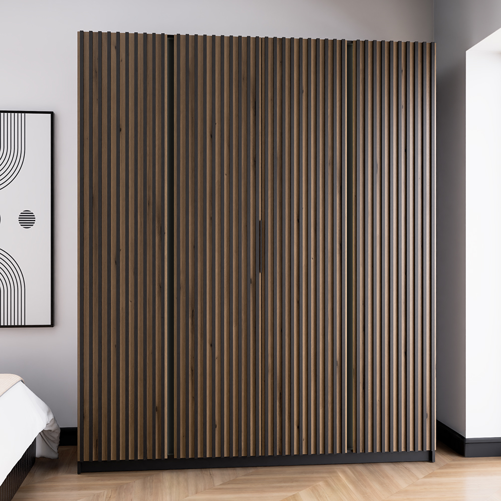 Šatní skříň KAJA 4LAM 200 cm | bez zrcadla | VYSOKÁ | černá + lamely