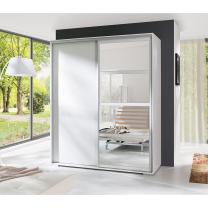 Šatní skříň LEO 180 cm | se zrcadlem | posuvné dveře | bílá