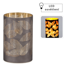 DÁREK | LED lampička s lístečky | šedá/zlatá | 9x9x14 cm