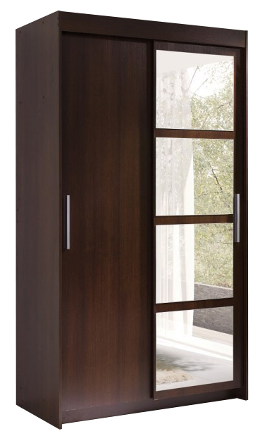 Šatní skříň Nero projasní a osvěží Vaše pokoje. Tato skříň vyniká především svým moderním designem, který doplňují praktická zrcadla. Nero je skříň o šířce 120 cm s posuvnými dveřmi, proto se hodí i do menších pokojů. Nábytek je vyroben z kvalitní laminátové dřevotřísky v oblíbeném odstínu bílá. Zboží Vám dodáme v demontu s návodem na sestavení a kováním.