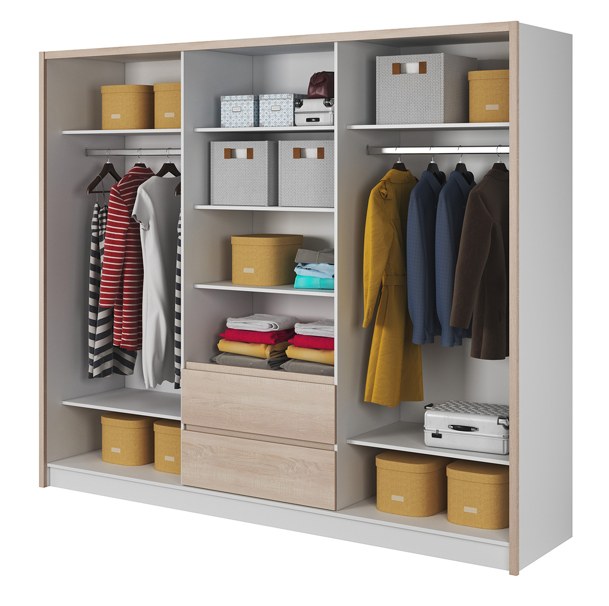 Šatní skříň Sara 250 - sonoma/bílá mat