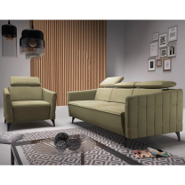 Díky užším područkám poskytuje sedací sestava širší sedací plochu, což znamená více prostoru k relaxaci. Pohovka má navíc rozkládací funkci, kterou můžete využít pro příležitostné přespání, a úložný prostor pro uschování lůžkovin.