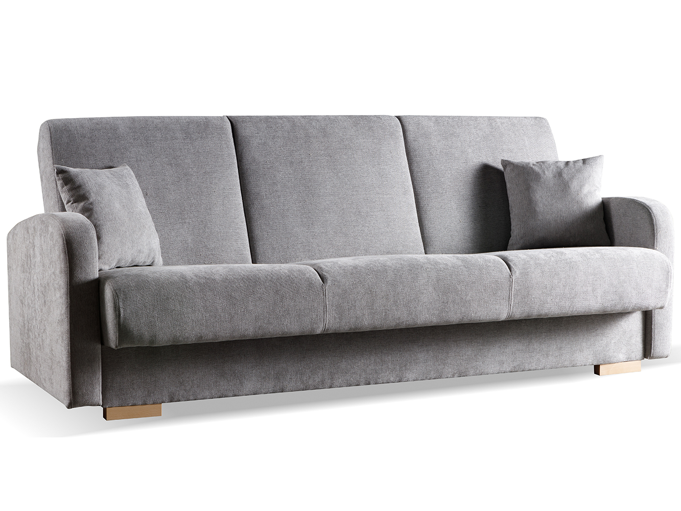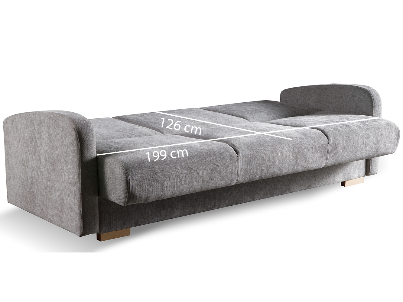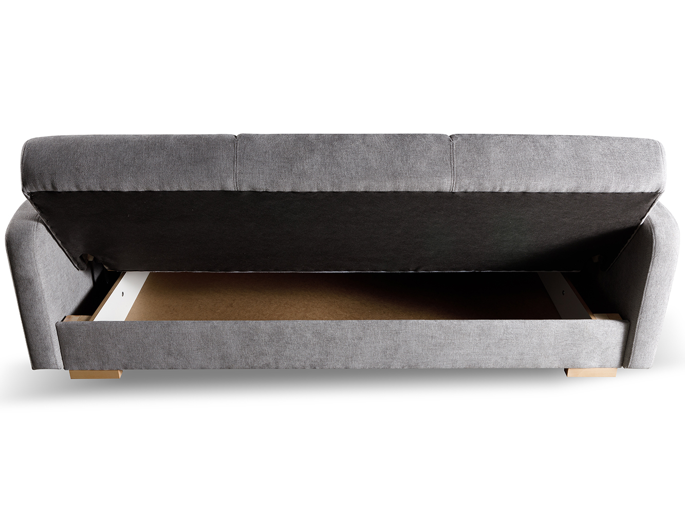 Díky systému "klik-klak" lze pohovku snadno a rychle rozložit a vytvořit tak lůžko pro příležitostné spaní. Pod sedací částí se navíc nachází úložný prostor, ideální pro uschování dek, polštářů nebo jiných drobností.