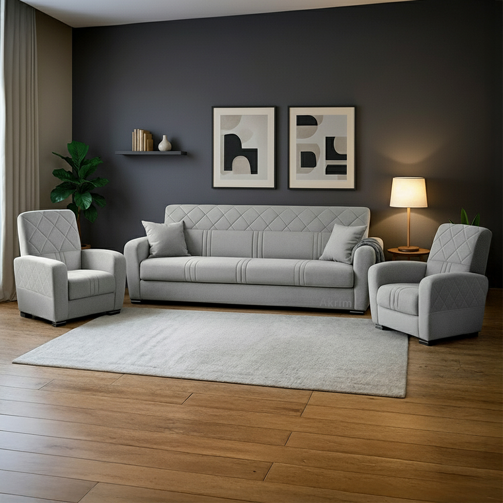 Dopřejte si pohodlí a styl s elegantní sedací sestavou SAVONA 3+1+1, která zahrnuje prostornou třímístnou pohovku s funkcí rozkladu a úložným prostorem a dvě pohodlná křesla. Ideální volba pro ty, kdo hledají spojení praktičnosti, komfortu a nadčasového designu.