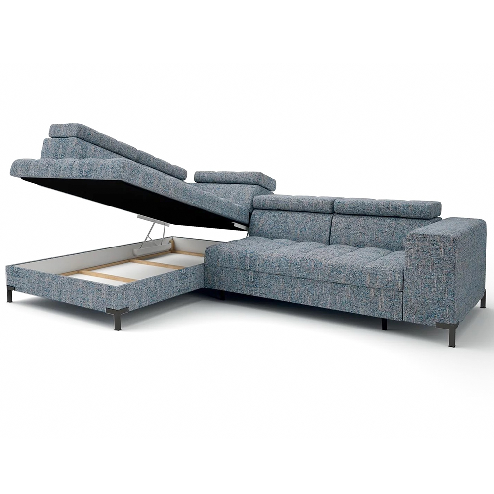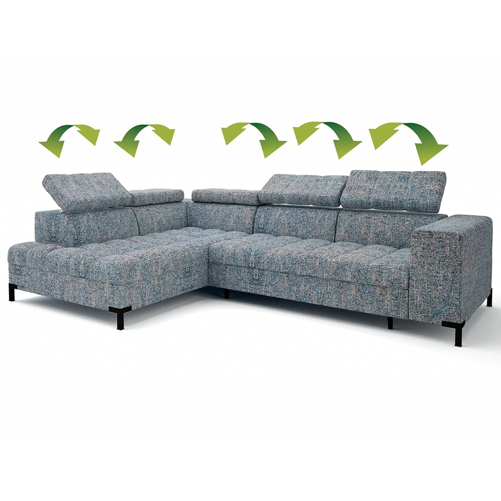 Sedací souprava disponuje polohovatelnými záhlavníky pro maximální pohodlí. Navíc nabízí úložný prostor pod otomanem, ideální pro uschování dek nebo polštářů.