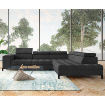Sedací souprava disponuje polohovatelnými záhlavníky pro maximální pohodlí. Navíc nabízí úložný prostor pod otomanem, ideální pro uschování dek nebo polštářů.