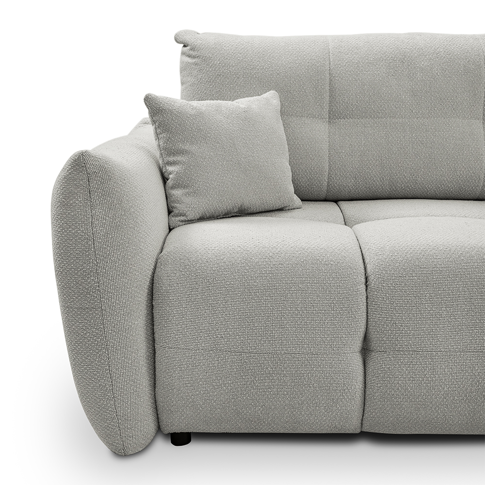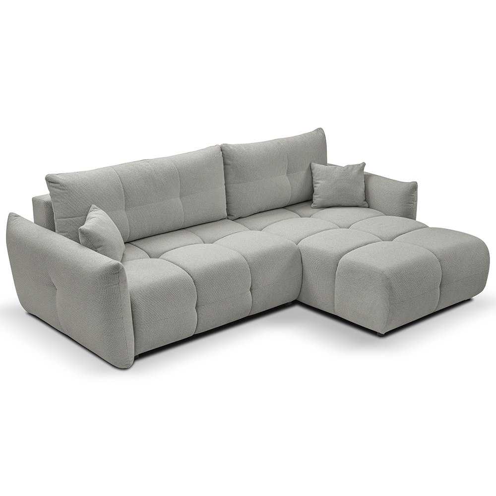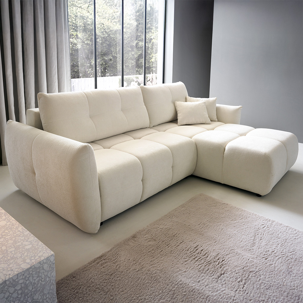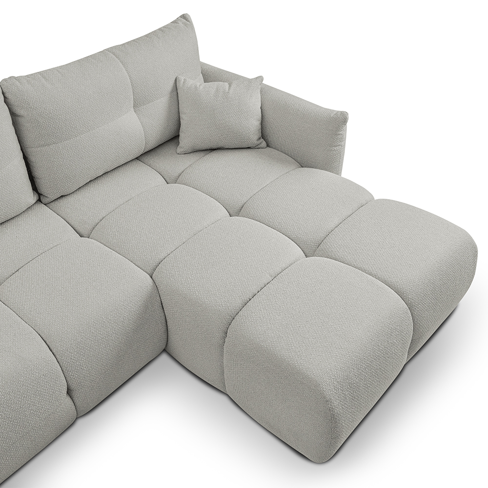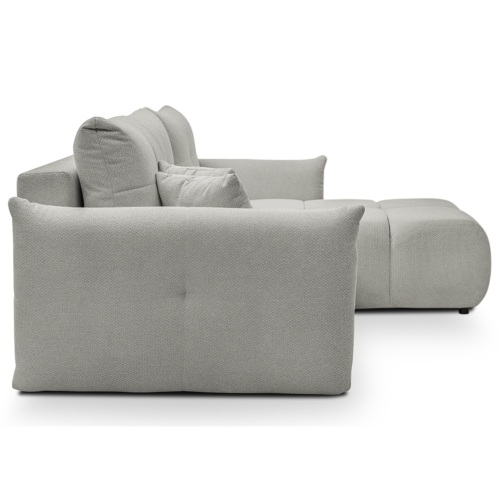 - Bohaté „bochánkové“ prošívání a volné linie vytvářejí ležérní boho atmosféru, která okamžitě zútulní každý interiér. L-kový tvar s jednou područkou a otevřeným koncem nabízí víc místa k sezení, aniž by působil robustně.