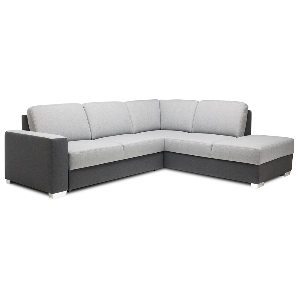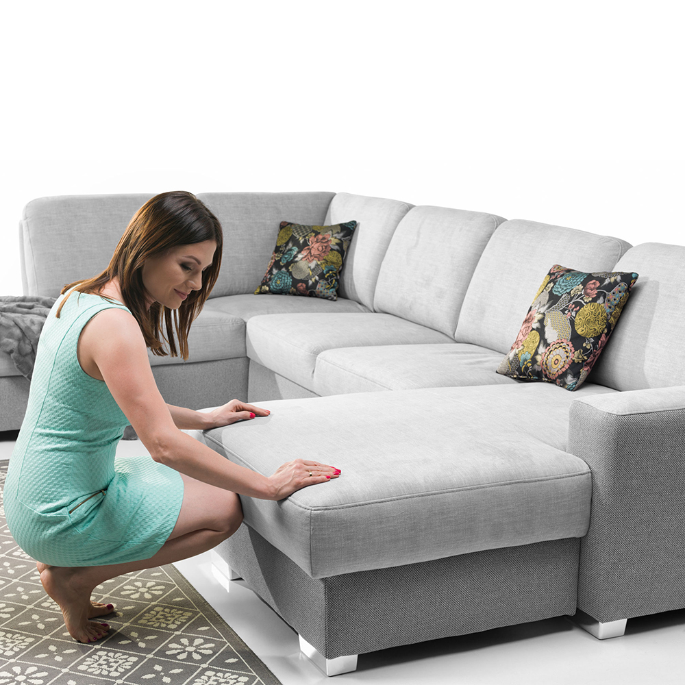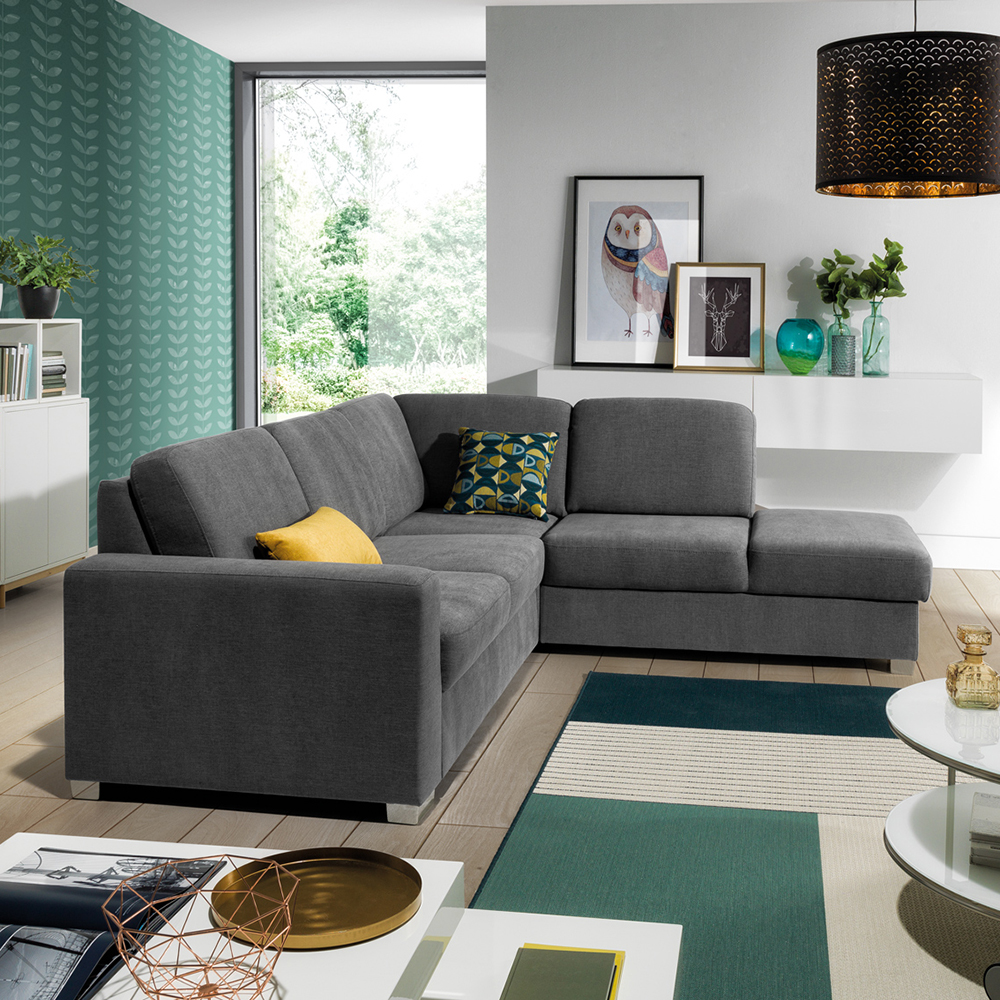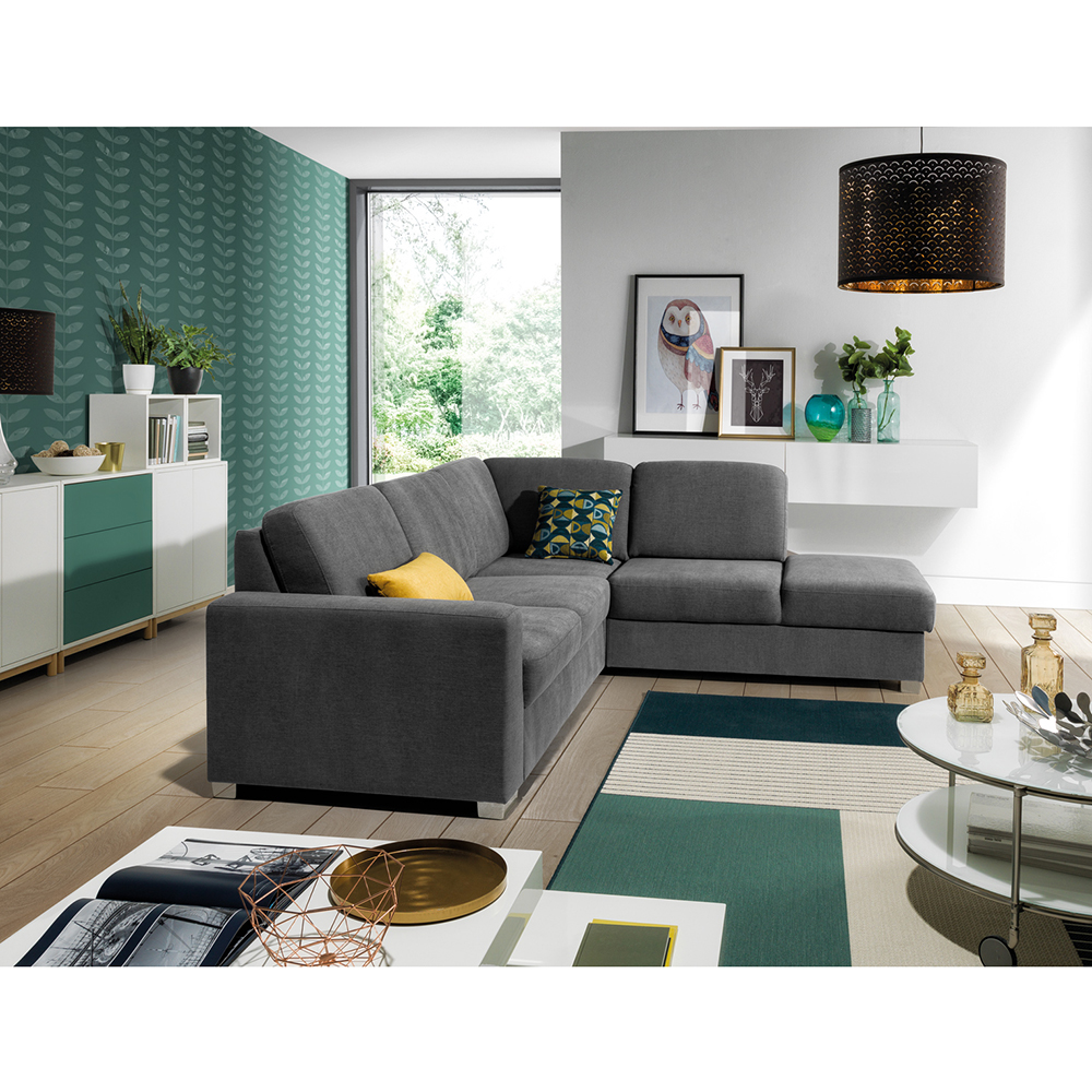 Sedací souprava CHANTAL 2FBL + OP ve tvaru L rozkládací - Hledáte sedací soupravu v jednoduchém a nadčasovém designu, která se Vám neokouká ani po letech? Modulová sedací souprava Chantal bude pro Vás tou pravou volbou. Chantal nabízíme již v předdefinovaných sestavách ve tvaru L, U i tvaru pohovek, nebo po jednotlivých dílech, které si libovolně zvolíte na míru. Díky své variabilitě je Chantal vhodná do menších i větších obývacích pokojů. Jednotlivé díly nabízí i funkci rozkladu pro příležitostné spaní či úložný prostor. Sed je středně tvrdý (ani moc měkký ani moc tvrdý... prostě tak akorát). Sedák tvoří pružiny typu faliste (vlnité) o síle 2,8 - 4,3 mm v kombinaci s kvalitní PUR pěnou. Stříbrné nožičky se hodí do každého obývacího pokoje. Chantal má výšku 90 cm. Pokud jste vyšší postavy, lze zvolit i podhlavníky navíc, které zvýší zádovou opěrku o 20 cm. Sedací soupravu Chantal si můžete zvolit v libovolných tkaninách ze vzorníku. Pokud byste si nevěděli rady s výběrem tkanin, neváhejte se na nás obrátit. Rádi Vám pomůžeme. Jakákoli sestava z kolekce Chantal je vhodná do prostoru, protože se jedná o celočalouněný nábytek. Záda jsou pevná. Polštáře nejsou navolno.