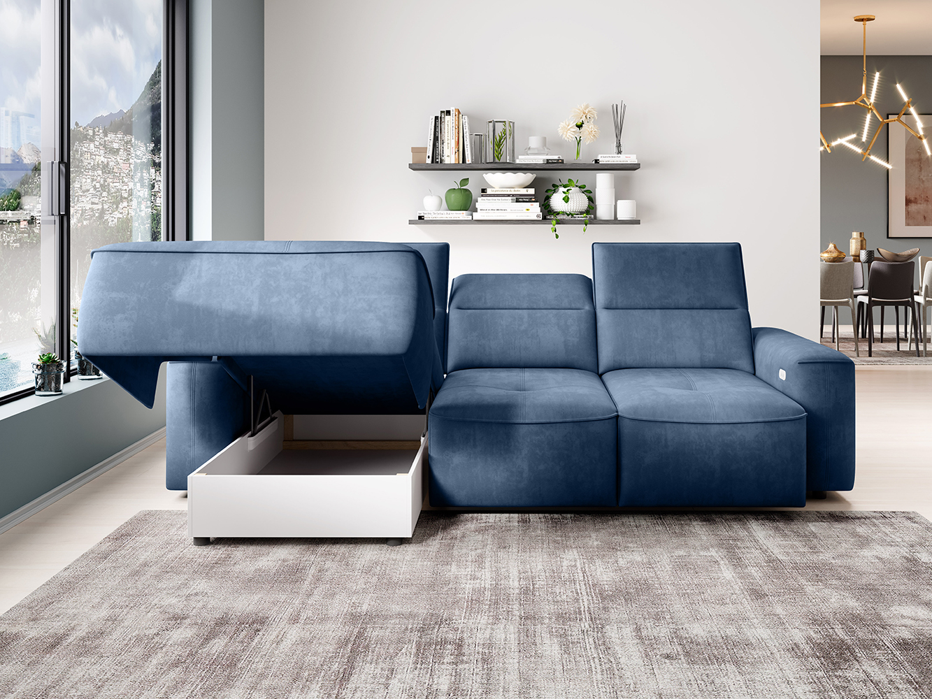 Sedací souprava Colombo MINI byla navržena v souladu s nejnovějšími trendy za použití nejkvalitnějších technologií a materiálů. Kolekce Colombo je vyrobena s velkým řemeslným zpracováním a důrazem na každý detail. Designeři tohoto čalouněného nábytku se zaměřili především na originalitu a luxus tak, aby vdechl Vašemu obývacímu pokoji neobyčejné a okázalé kouzlo. Velkou devízou sedací soupravy jsou nastavitelné hlavové a zádové opěrky s pohodlnějším úhlem sklonu, které ještě více zpříjemňují používání. Díky elektrickému mechanismu si můžete nastavit hloubku sedu a ve chvilce připravíte menší lůžko pro příležitostné spaní. Výplň sedací soupravy tvoří kombinace faliste pružin (vlnité) a kvalitní HR vysokoelastické pěny. Vysoký sedák 45 cm zajišťuje velmi komfortní usedání i vstávání. Sedací souprava disponuje praktickým úložným prostorem z bílého lamina umístěným v části pod otomanem. Sem můžete uschovat třeba polštářky nebo deky a budete je mít tak snadno hned po ruce. Záda jsou očalouněná ve stejné látce, takže vypadá velmi efektně i ve volném prostoru. L-kovou sedací soupravu Colombo MINI si můžete objednat v libovolné potahové látce ze vzorníku. V naší nabídce najdete levou i pravou variantu. Nábytek Vám dodáme ve dvou balících. Montáž je velmi snadná a rychlá.