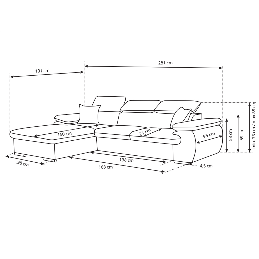 Sedací souprava COOL | 191x281 cm | rozkládací + úložný prostor | LEVÁ | VÝBĚR TKANIN