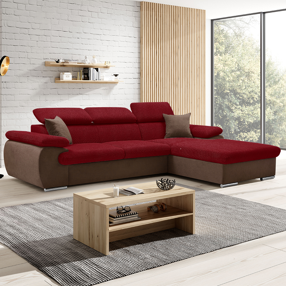 Sedací souprava COOL 281x191 cm | rozkládací + úložný prostor | PRAVÁ | červeno hnědá 09/05
