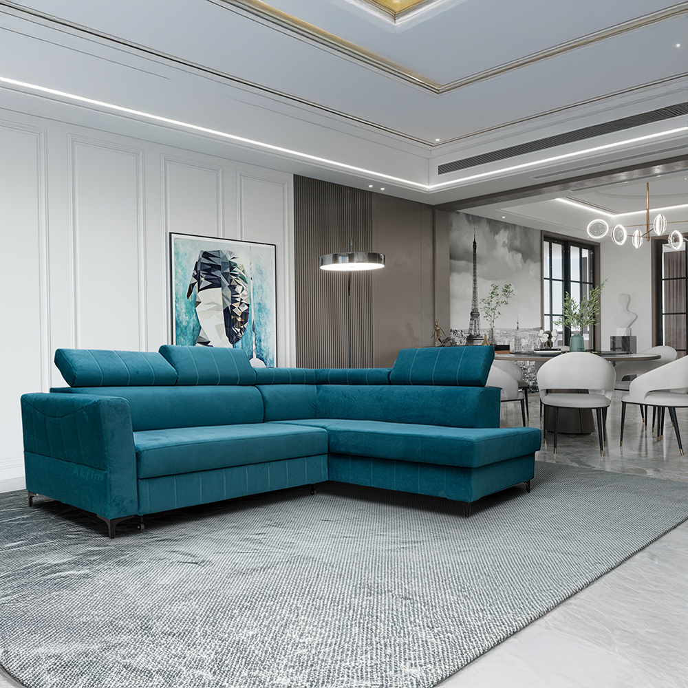 Sedací souprava CORTI 257x202 | PRAVÁ | rozkládací + úložný prostor | VÝBĚR TKANIN