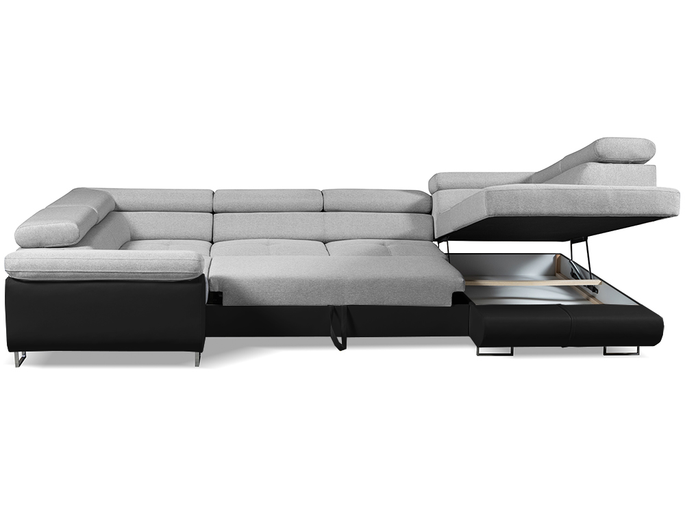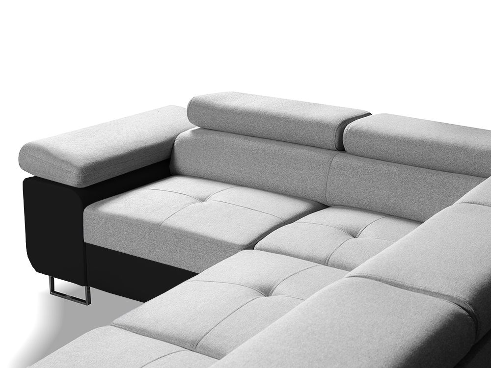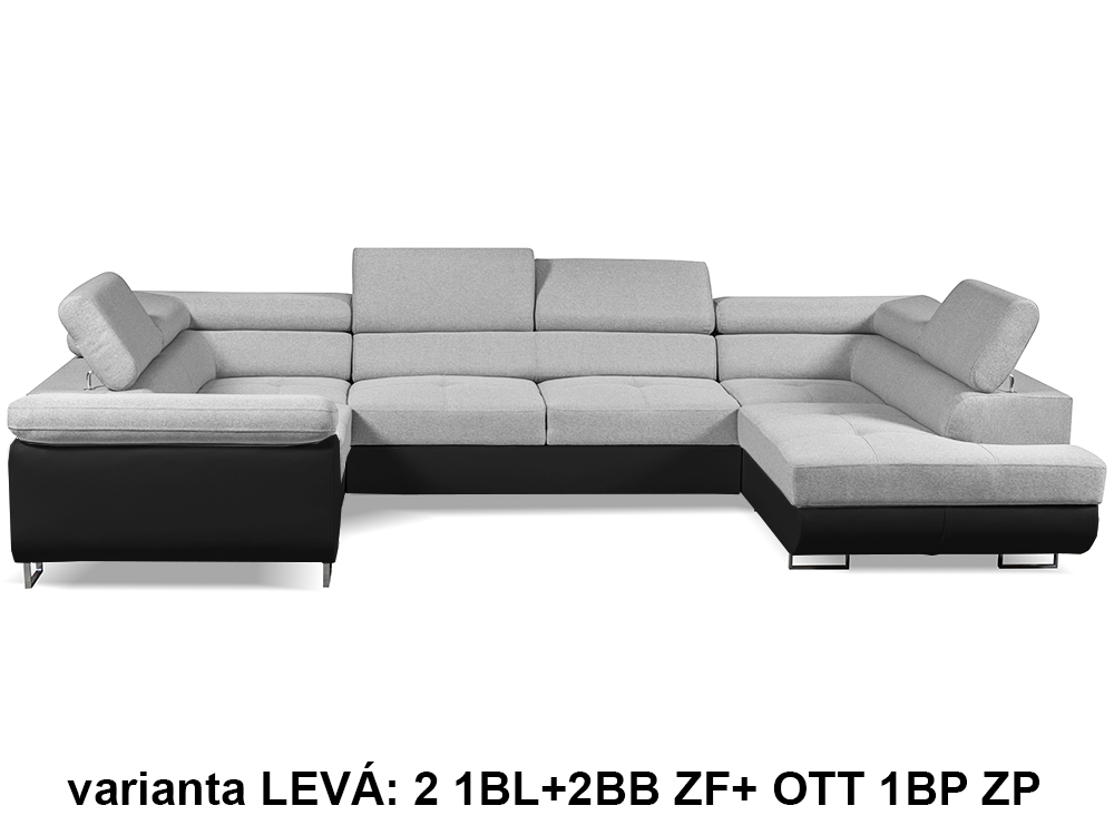 Sedací souprava Cosmo U je oblíbeným a zároveň velmi nadčasovým kouskem mezi sedacími soupravami rohového typu ve tvaru U. Její nepřehlédnutelnou předností jsou určitě polohovatelné záhlavníky, které si nastavíte podle sebe, tak aby se Vám odpočívalo co nejlépe. Cosmo nabízíme v kvalitním příjemném potahovém materiálu. Zadní část sedací soupravy je očalouněná, proto se velmi hodí i do otevřeného prostoru. Sedací část je vyplněna faliste (vlnitými) pružinami v kombinaci s polyuretanovou pěnou. Sedačka se velmi snadno rozkládá a vy tak můžete připravit příležitostné spaní např. pro vaší návštěvu. Cosmo disponuje i praktickým úložným prostorem z bílého lamina, který je umístěn v části pod otomanem. Elegantní chromované nohy podtrhují moderní nadčasový design a hodí se tak do každého interiéru. Zboží Vám dodáme ve dvou balících, není však třeba složité montáže.