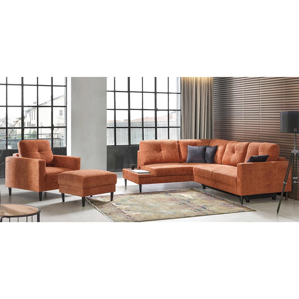 K sedací soupravě doporučujeme objednat taburet i křeslo ve stejném designu, se kterými si rozšíříte prostor k sezení.