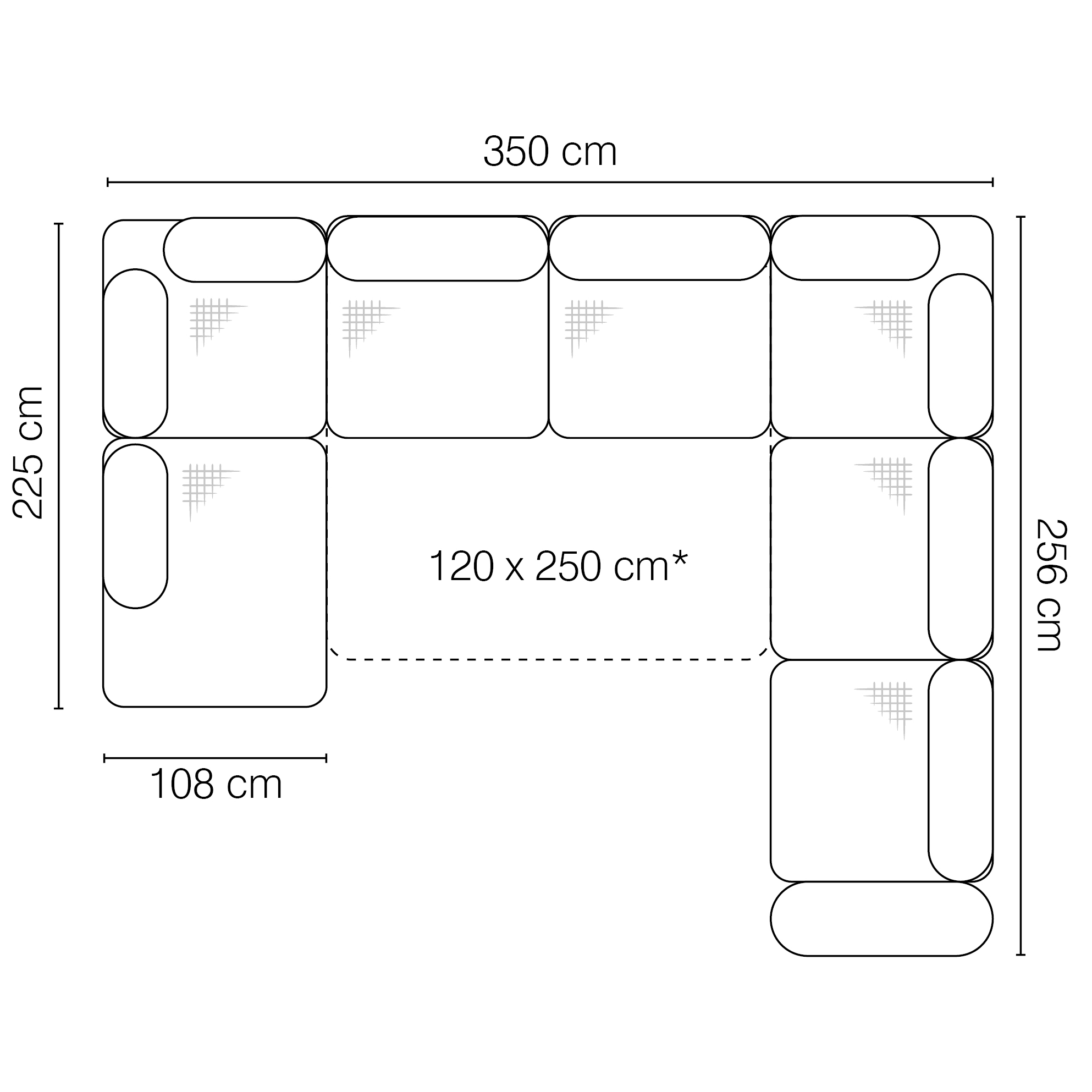 Sedací souprava CREMONA U + 6x záhlavník 205x360x190 | levá | VÝBĚR TKANIN