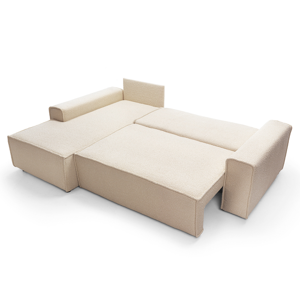 Sklápěcí záda umožňují rychlou transformaci sedačky na prostorné lůžko, což je ideální pro příležitostné přespání nebo nečekanou návštěvu. Velká spací plocha poskytuje komfortní místo pro relaxaci nebo dokonce klidný spánek.