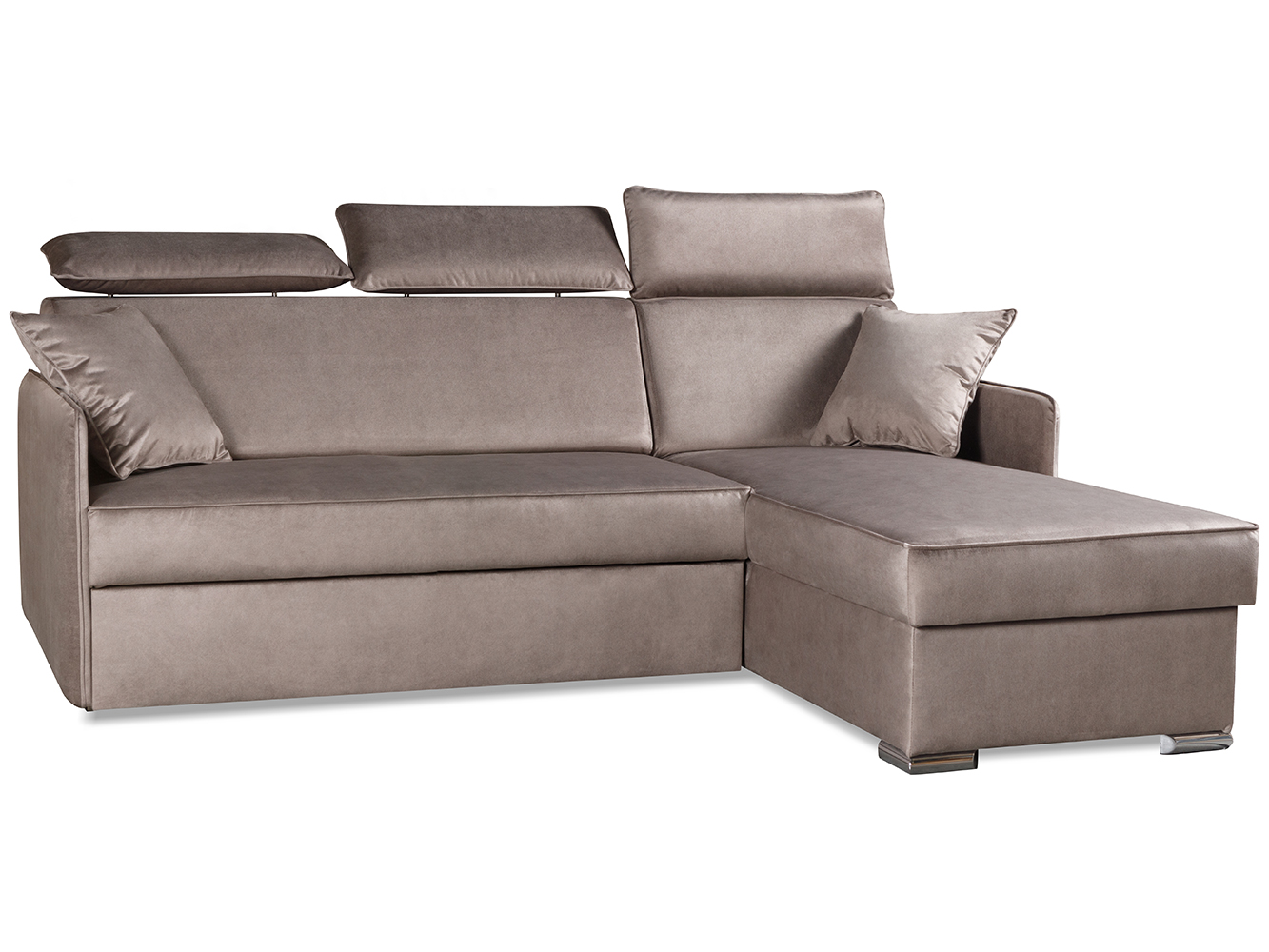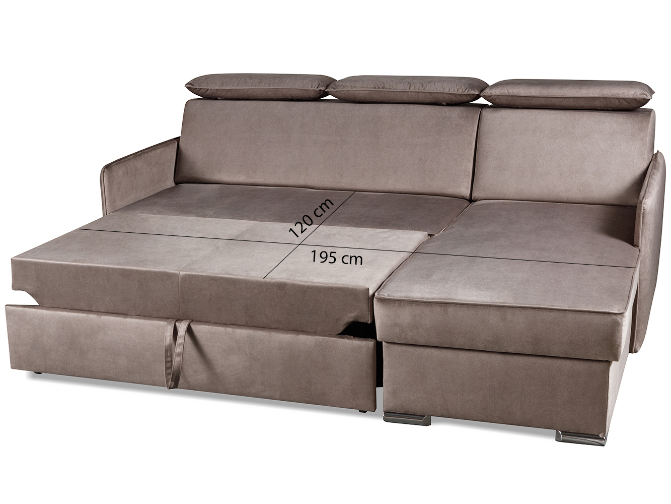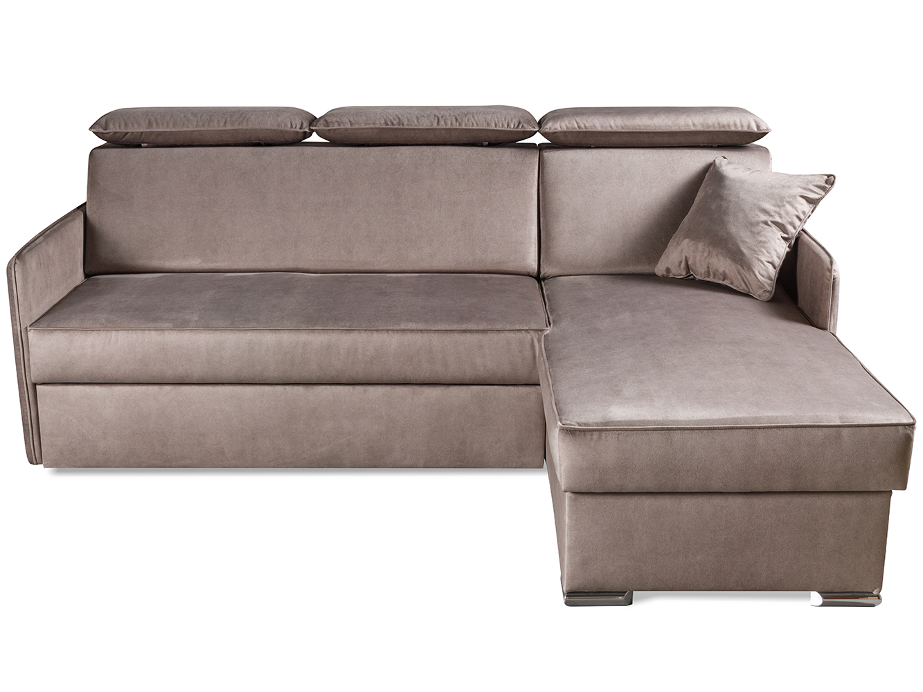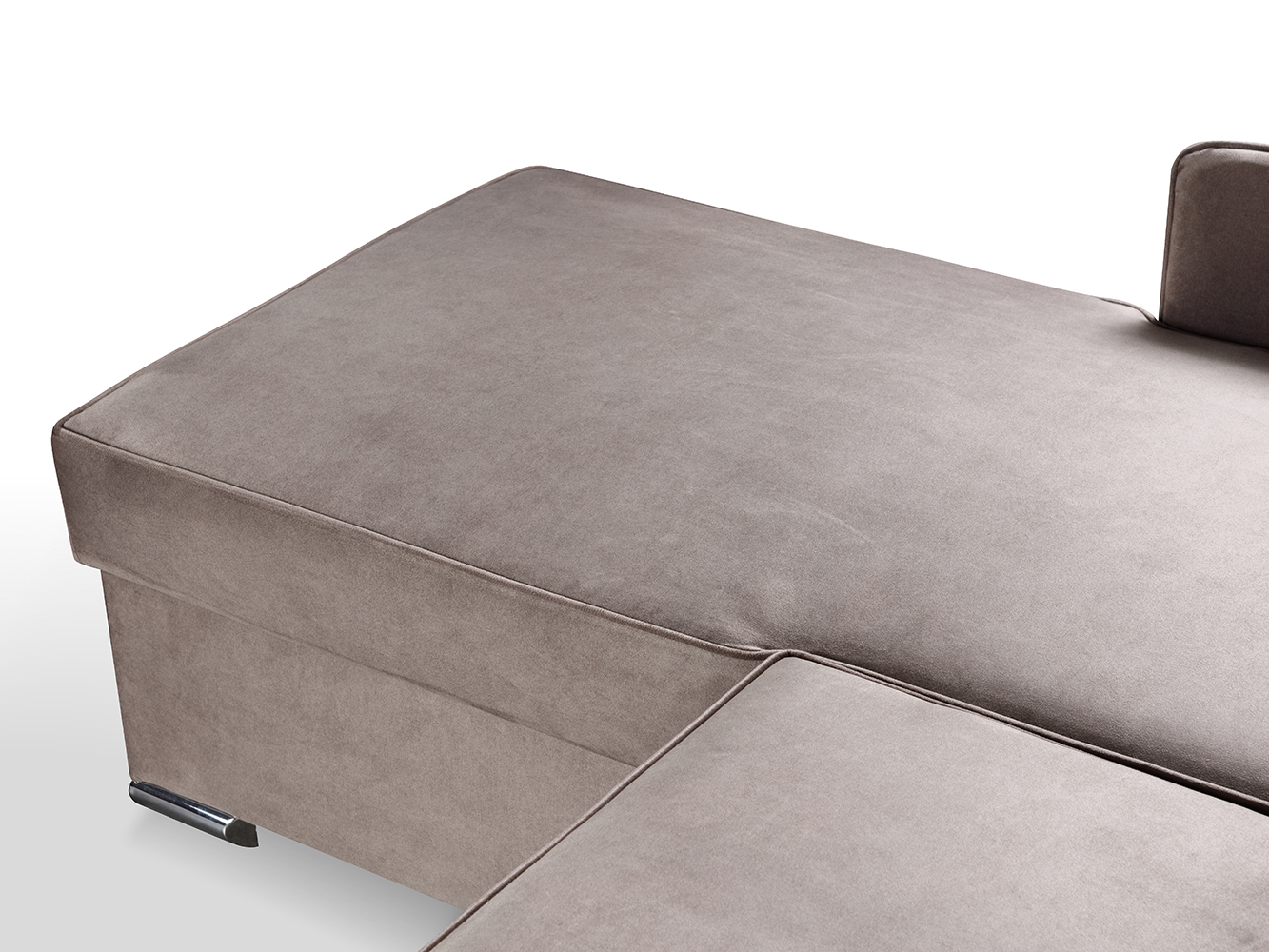 Minimalistický desing, funkčnost a malá šířka, to je rozkládací sedací souprava FIT. Díky svým důmyslně navrženým rozměrům, skvěle zapadne i do místností, kde není prostoru nazbyt. Zajímavým prvkem u této L-kové sedací soupravy jsou ozdobné lemy na okrajích, což dodává modelu netradiční nádech. Kostra sedací soupravy je vyrobena z měkkého a tvrdého dřeva a částečně z dřevotřísky. Pružiny faliste společně s PUR pěnou zajišťují pohodlné sezení. Sedací a opěrná část je střední tuhosti, takže vytvoří komfortní podpěru a zároveň se Vám bude dobře vstávat. Pro větší relaxaci jsou zádové opěrky opatřeny polohovatelnými záhlavníky, které si nastavíte podle sebe, aby se Vám odpočívalo co nejlépe. Záda sedací soupravy jsou očalouněná, takže vypadá velmi vkusně i v prostoru. Sedačka se velmi jednoduše rozkládá, a Vy tak během okamžiku vytvoříte plochu pro příležitostné spaní. Jako bonus je rozkládací část ve stejné potahové látce. Fit disponuje praktickým úložným prostorem z bílého lamina. Úložný prostor je v části pod otomanem, kam můžete schovat např. deky nebo polštářky. Elegantní chromové nohy podtrhují moderní nadčasový design a hodí se tak do každého interiéru. Sedací souprava je univerzální. Umístění otomanu vpravo nebo vlevo si zvolíte až při montáži.