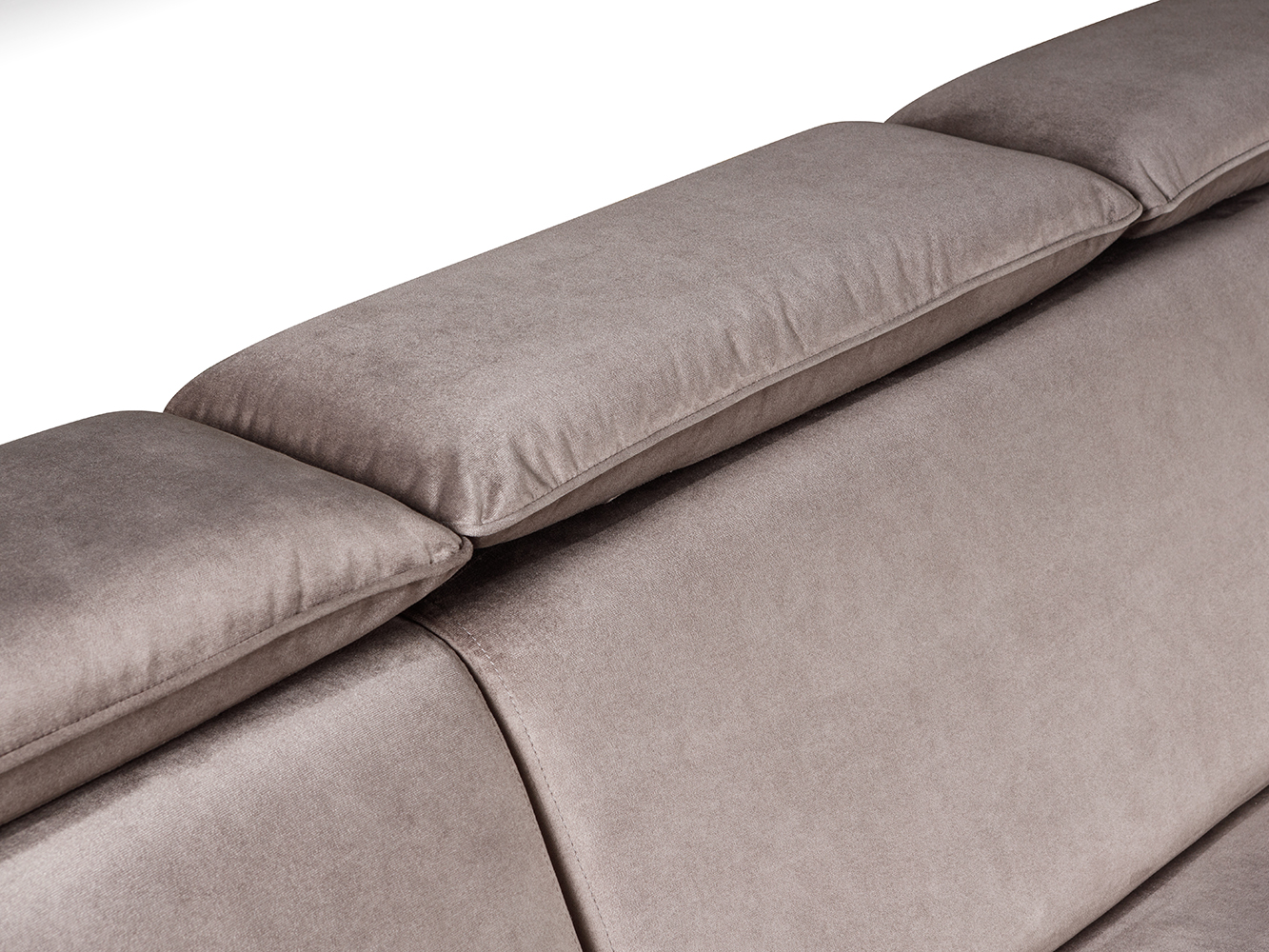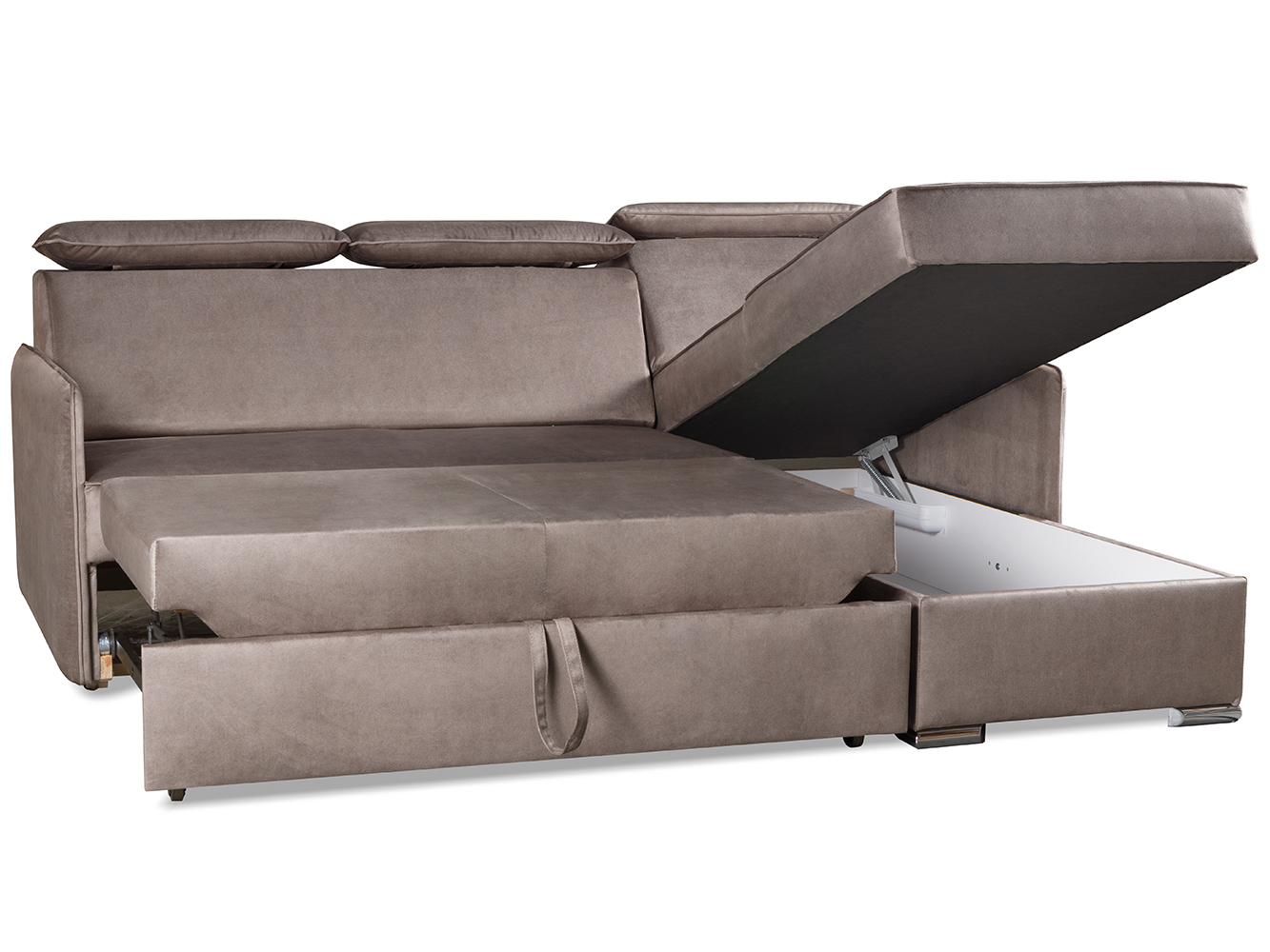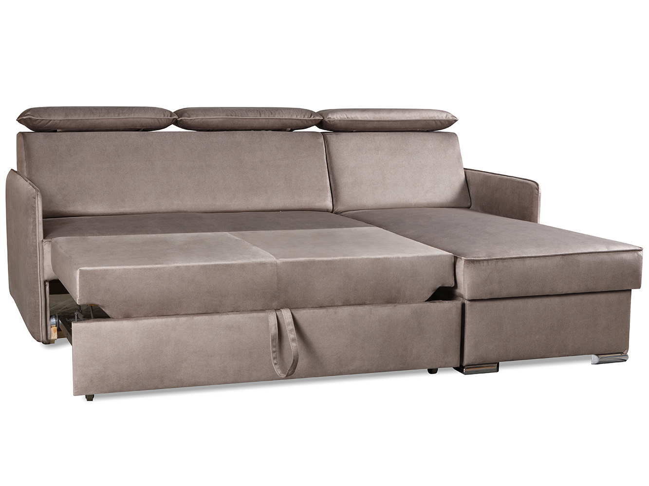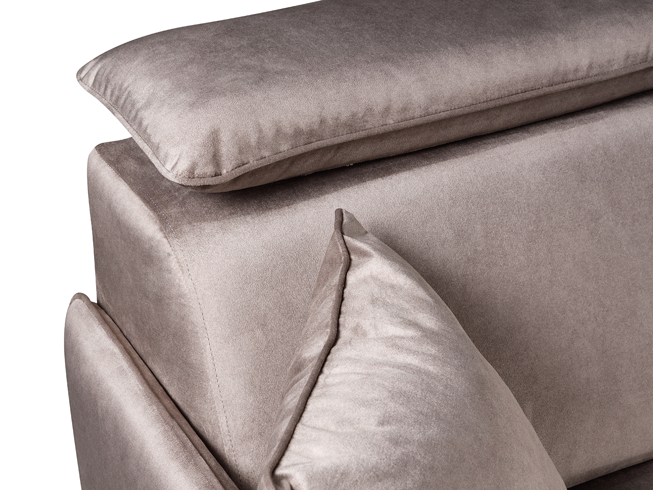 Minimalistický desing, funkčnost a malá šířka, to je rozkládací sedací souprava FIT. Díky svým důmyslně navrženým rozměrům, skvěle zapadne i do místností, kde není prostoru nazbyt. Zajímavým prvkem u této L-kové sedací soupravy jsou ozdobné lemy na okrajích, což dodává modelu netradiční nádech. Kostra sedací soupravy je vyrobena z měkkého a tvrdého dřeva a částečně z dřevotřísky. Pružiny faliste společně s PUR pěnou zajišťují pohodlné sezení. Sedací a opěrná část je střední tuhosti, takže vytvoří komfortní podpěru a zároveň se Vám bude dobře vstávat. Pro větší relaxaci jsou zádové opěrky opatřeny polohovatelnými záhlavníky, které si nastavíte podle sebe, aby se Vám odpočívalo co nejlépe. Záda sedací soupravy jsou očalouněná, takže vypadá velmi vkusně i v prostoru. Sedačka se velmi jednoduše rozkládá, a Vy tak během okamžiku vytvoříte plochu pro příležitostné spaní. Jako bonus je rozkládací část ve stejné potahové látce. Fit disponuje praktickým úložným prostorem z bílého lamina. Úložný prostor je v části pod otomanem, kam můžete schovat např. deky nebo polštářky. Elegantní chromové nohy podtrhují moderní nadčasový design a hodí se tak do každého interiéru. Sedací souprava je univerzální. Umístění otomanu vpravo nebo vlevo si zvolíte až při montáži.