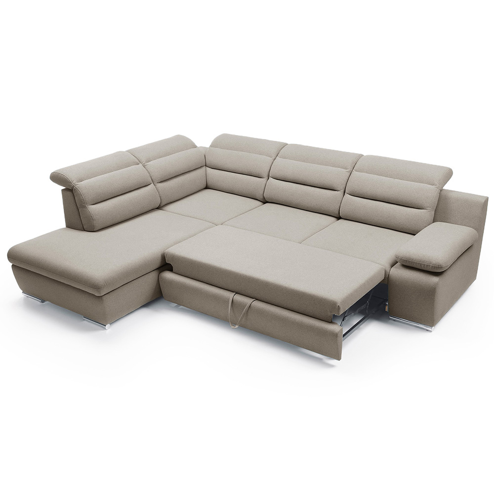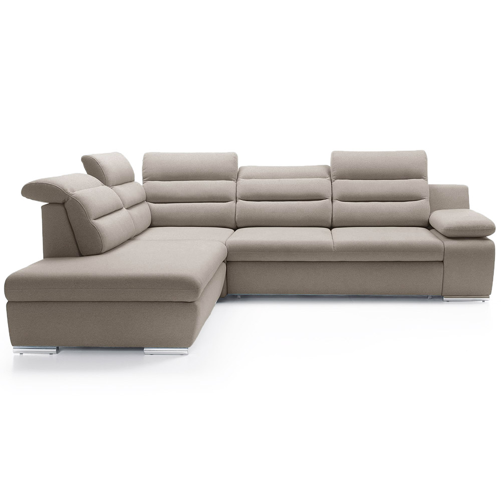 Sedací souprava Greco ve tvaru L nadchne každého, kdo hledá moderní a zároveň pohodlnou sedačku. Greco Vám zajistí maximální odpočinek v obývacím pokoji. S polohovatelnými záhlavníky si nastavíte to pravé sezení. Nastavitelná je i područka na otomanu. Grego disponuje praktickým úložným prostorem pod otomanem a rozkladem pro příležitostné přespání. Sedák tvoří kombinace faliste pružin (vlnité) a kvalitní PUR pěny. Sed je středně tvrdý a pohodlný (ani moc tvrdý ani moc měkký). Záda jsou čalouněná a lze tak sedací soupravu umístit i do prostoru. Chromové nožičky dodávají sedací soupravě Greco elegantní vzhled. Sedací soupravu si u nás můžete objednat v levé i pravé variantě stejně tak si můžete vybrat ze vzorníku libovolnou tkaninu. Greco Vám doručíme ve dvou balíkách. Montáž je velice snadná a rychlá.